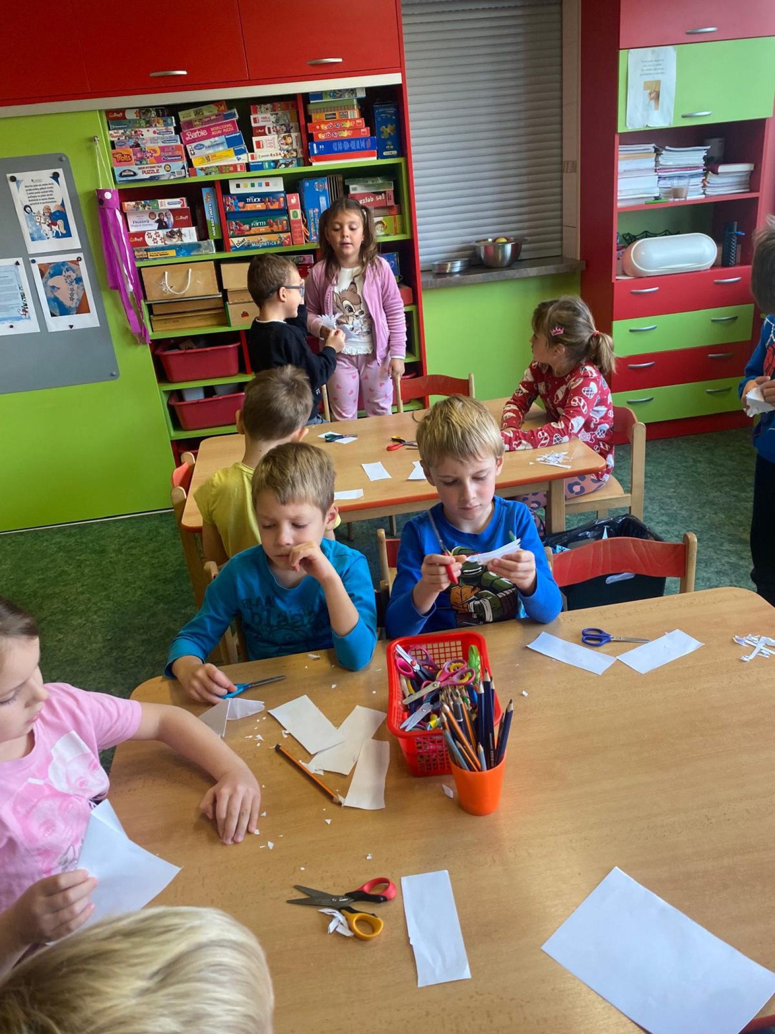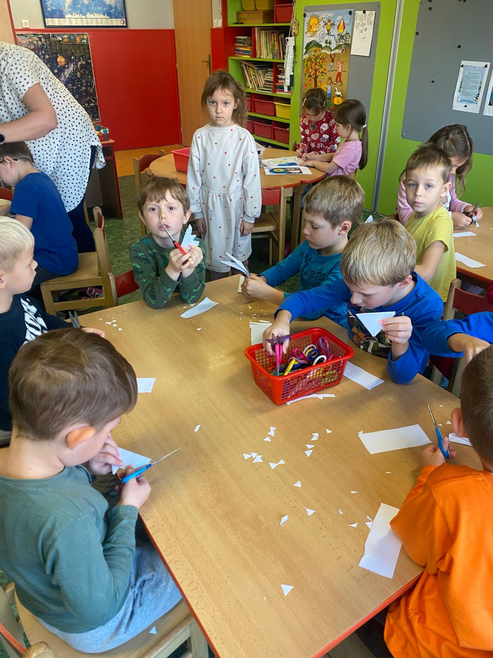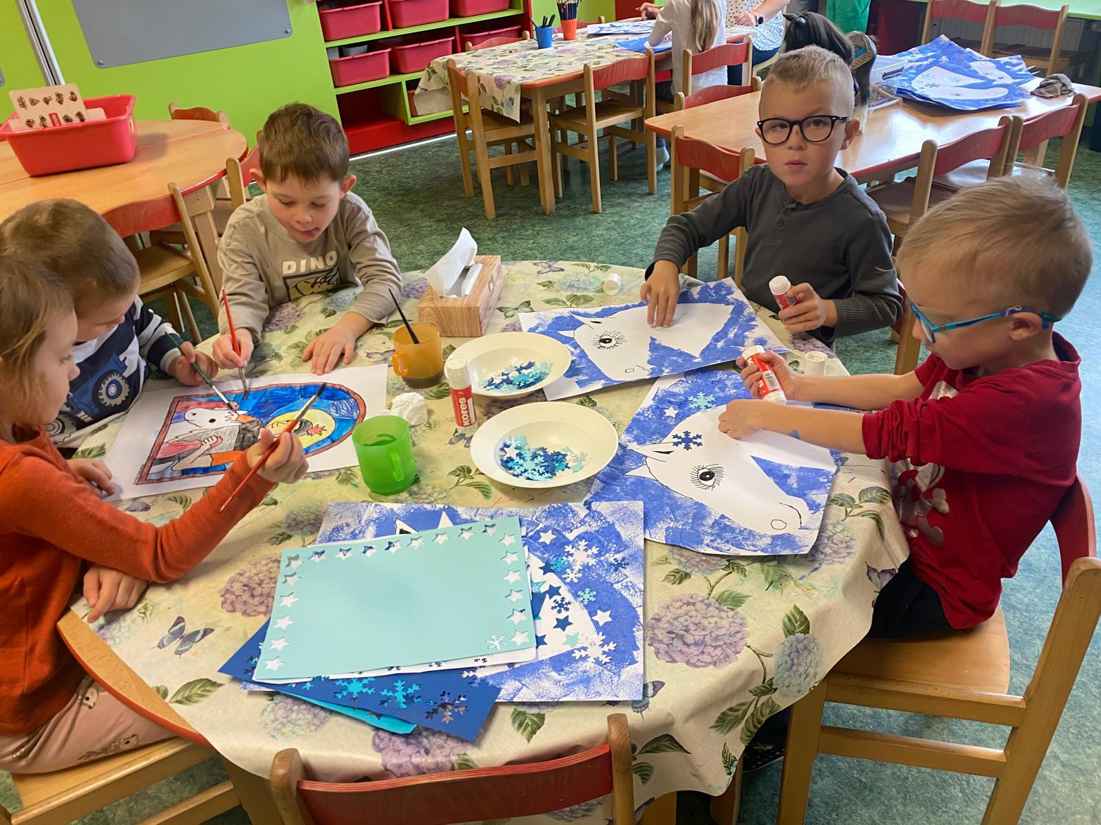 - Procvičovali jsme stříhání při tvoření vloček a začali pracovat na obrázku Martinova koně se sněhovou hřívou, společně jsme si při tom přáli, aby jsme se sněhu letos dočkali.