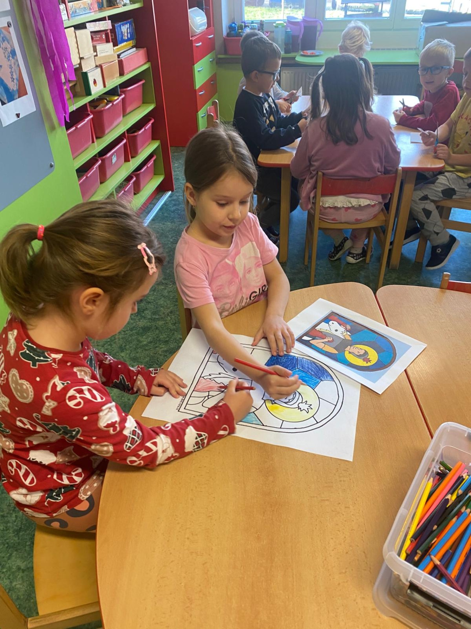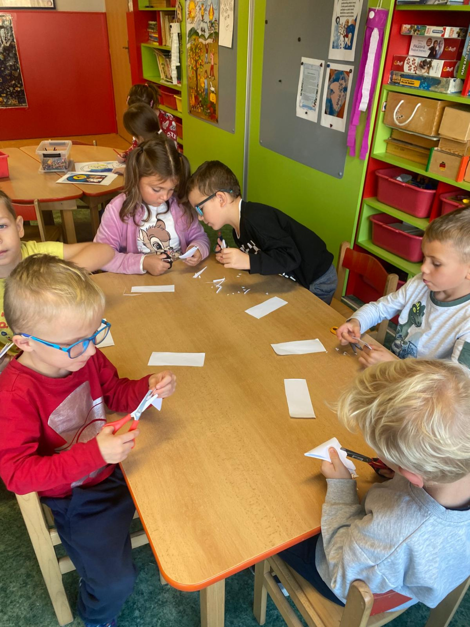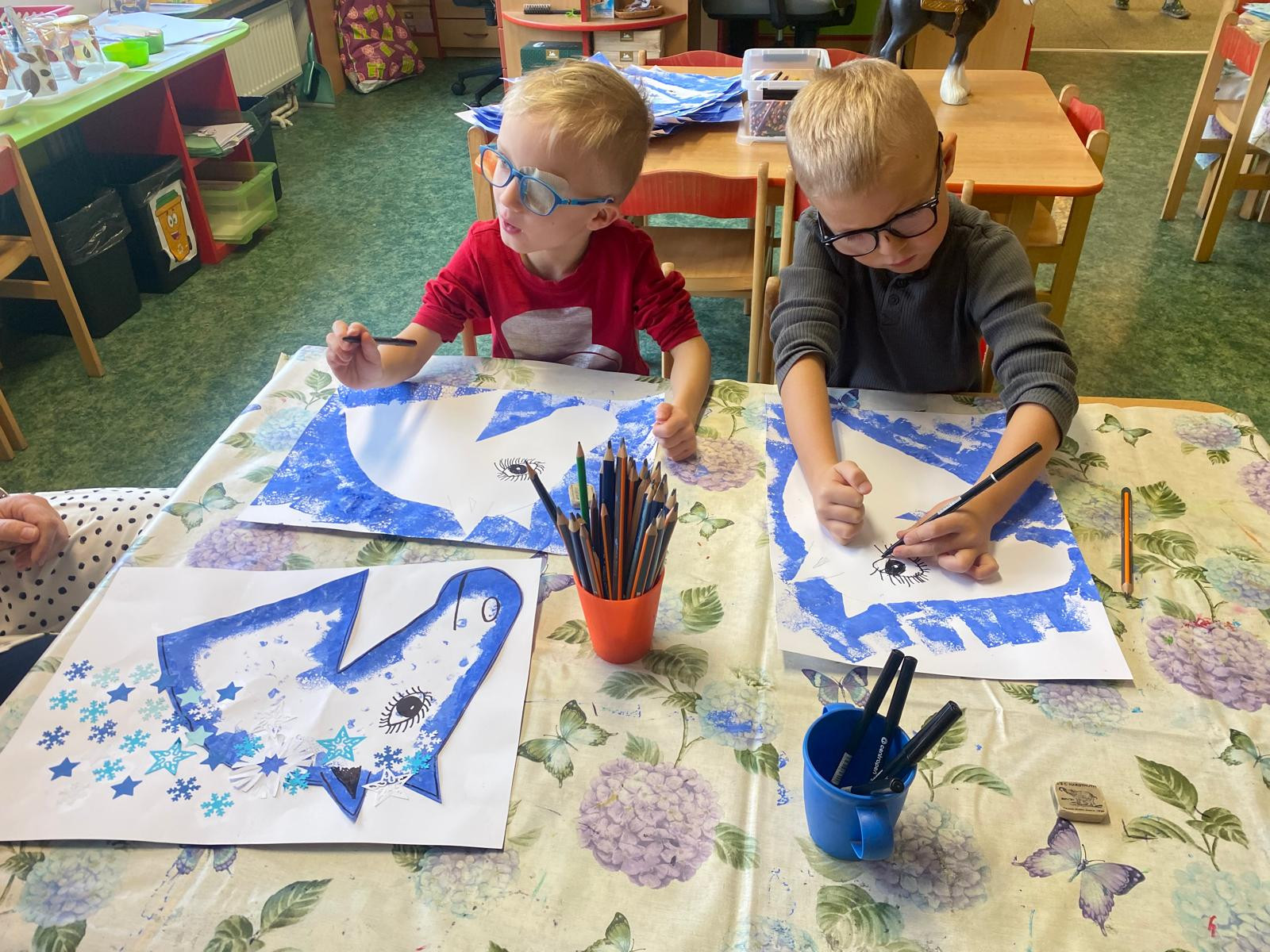 - Procvičovali jsme stříhání při tvoření vloček a začali pracovat na obrázku Martinova koně se sněhovou hřívou, společně jsme si při tom přáli, aby jsme se sněhu letos dočkali.