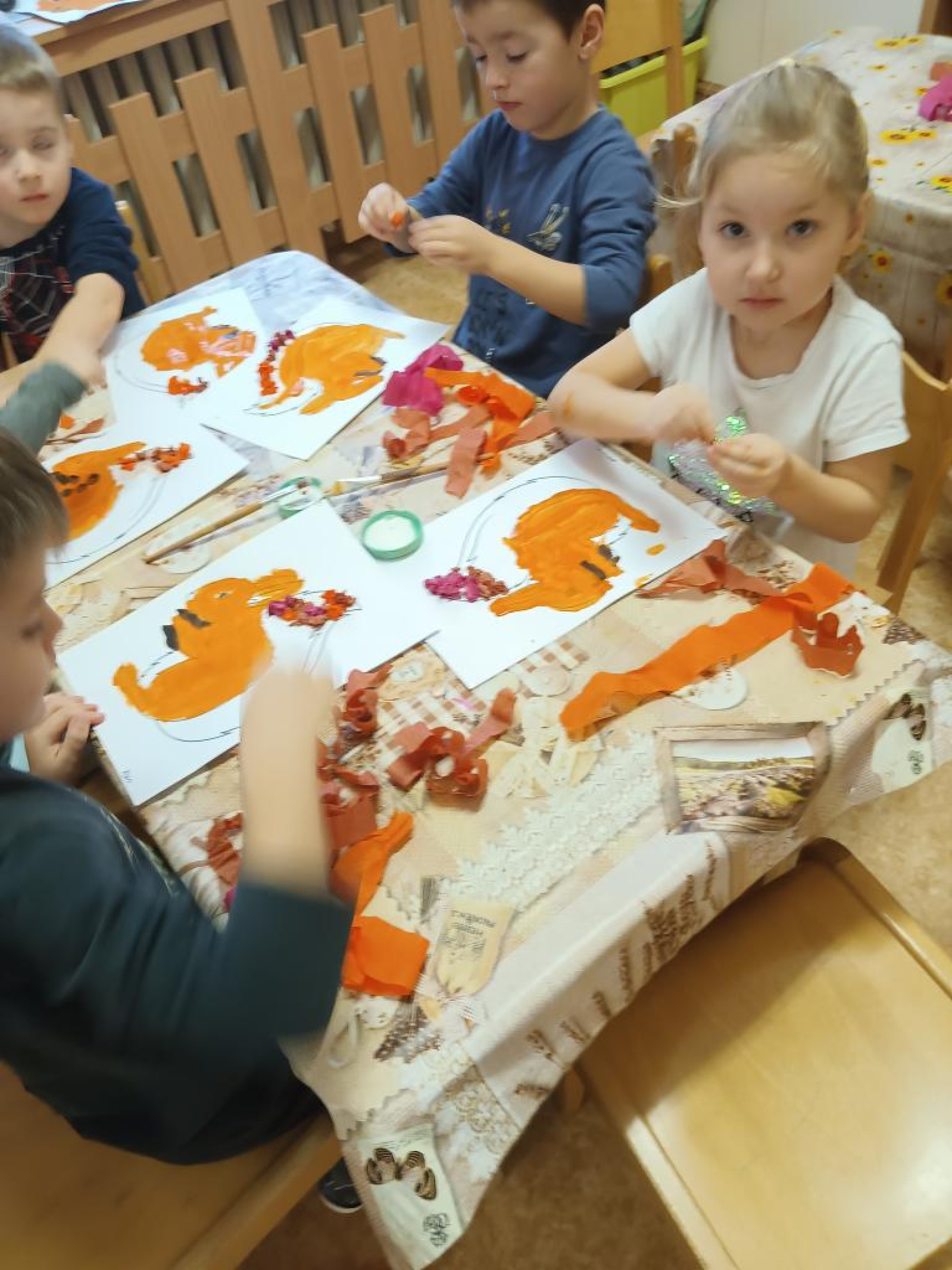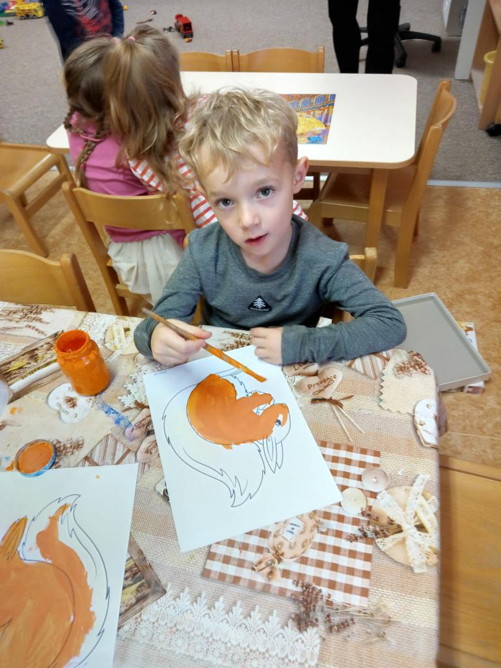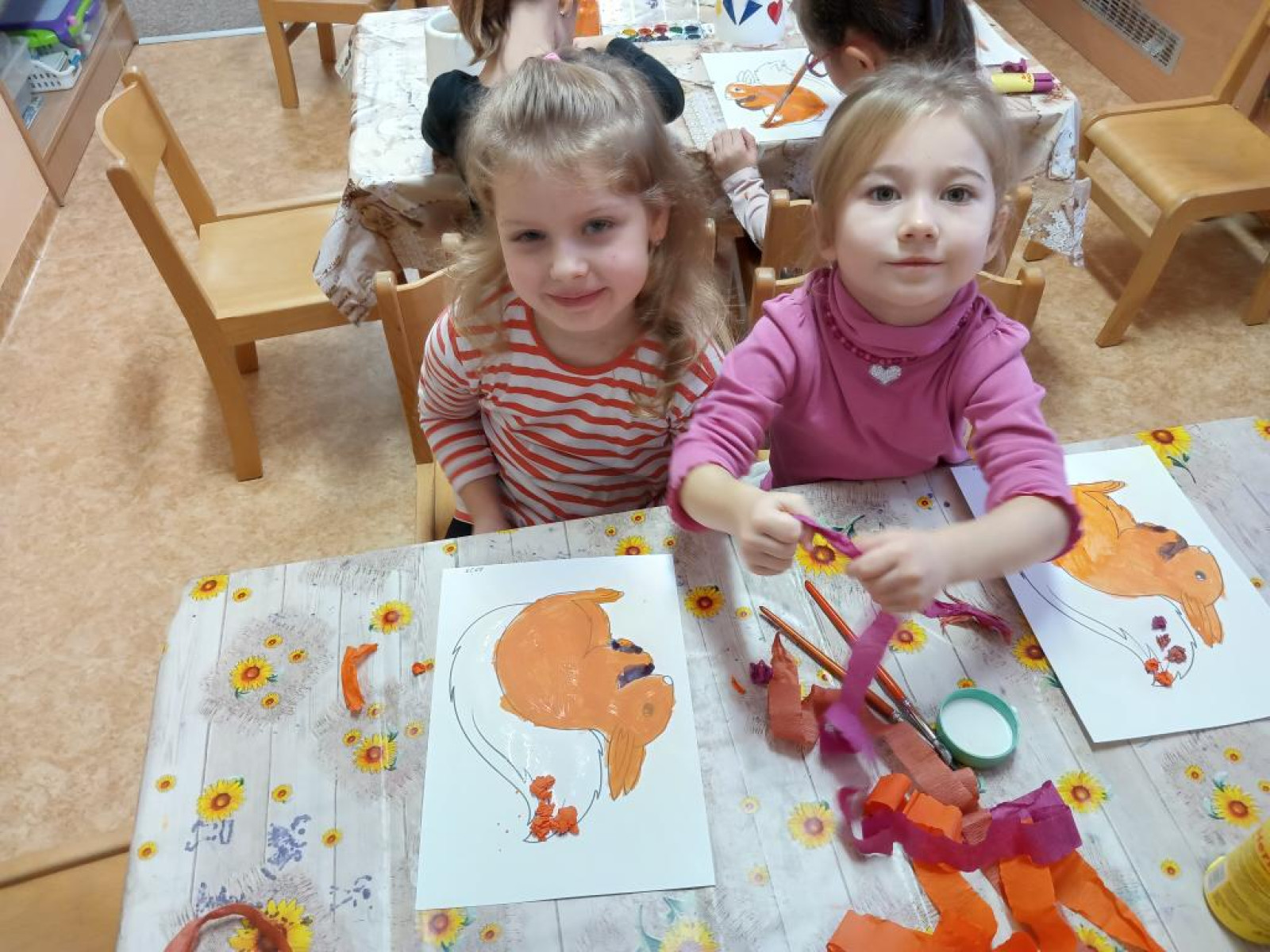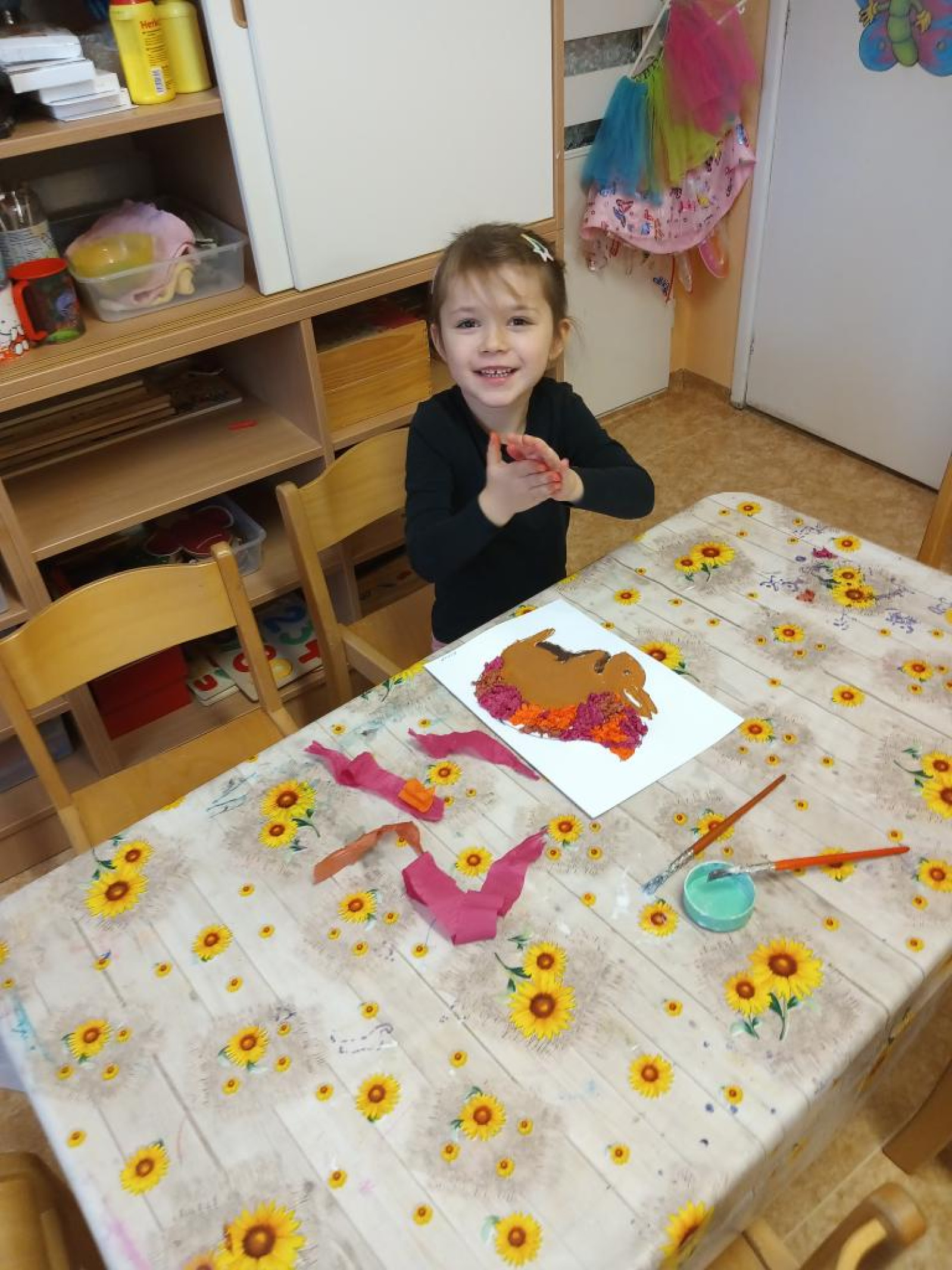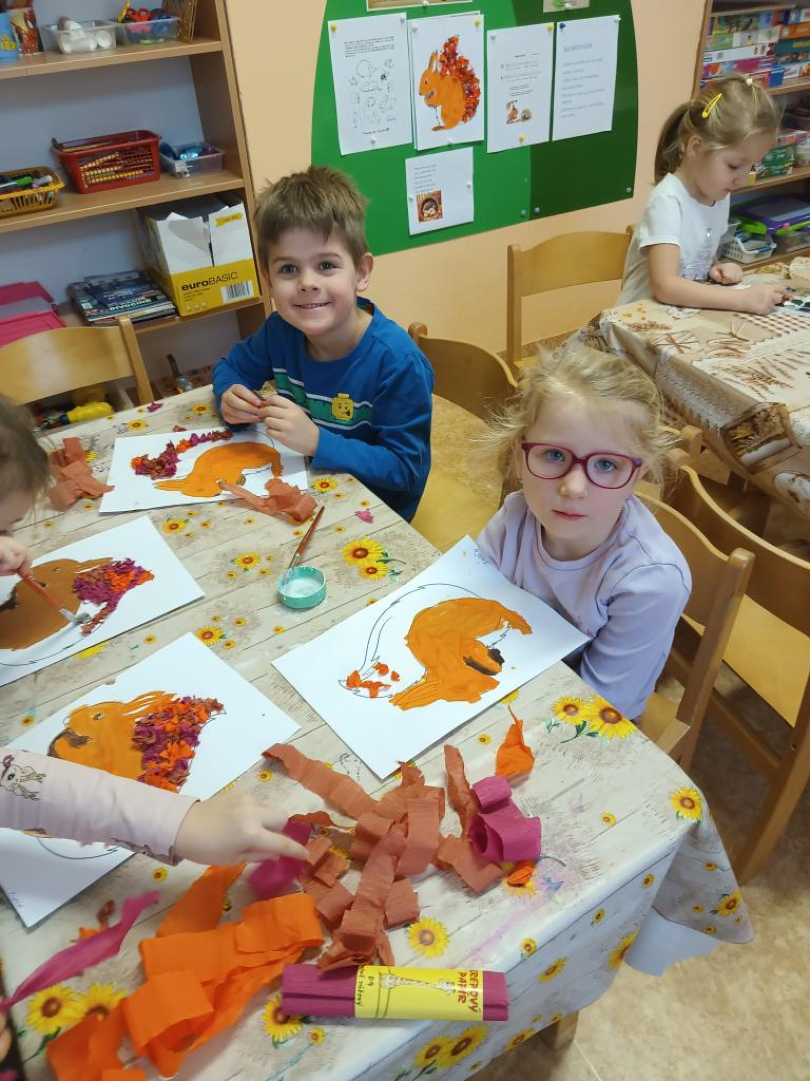 - děti si během výtvarné a pracovní činnosti vytvořily Veverku - rozvoj jemné motoriky rukou