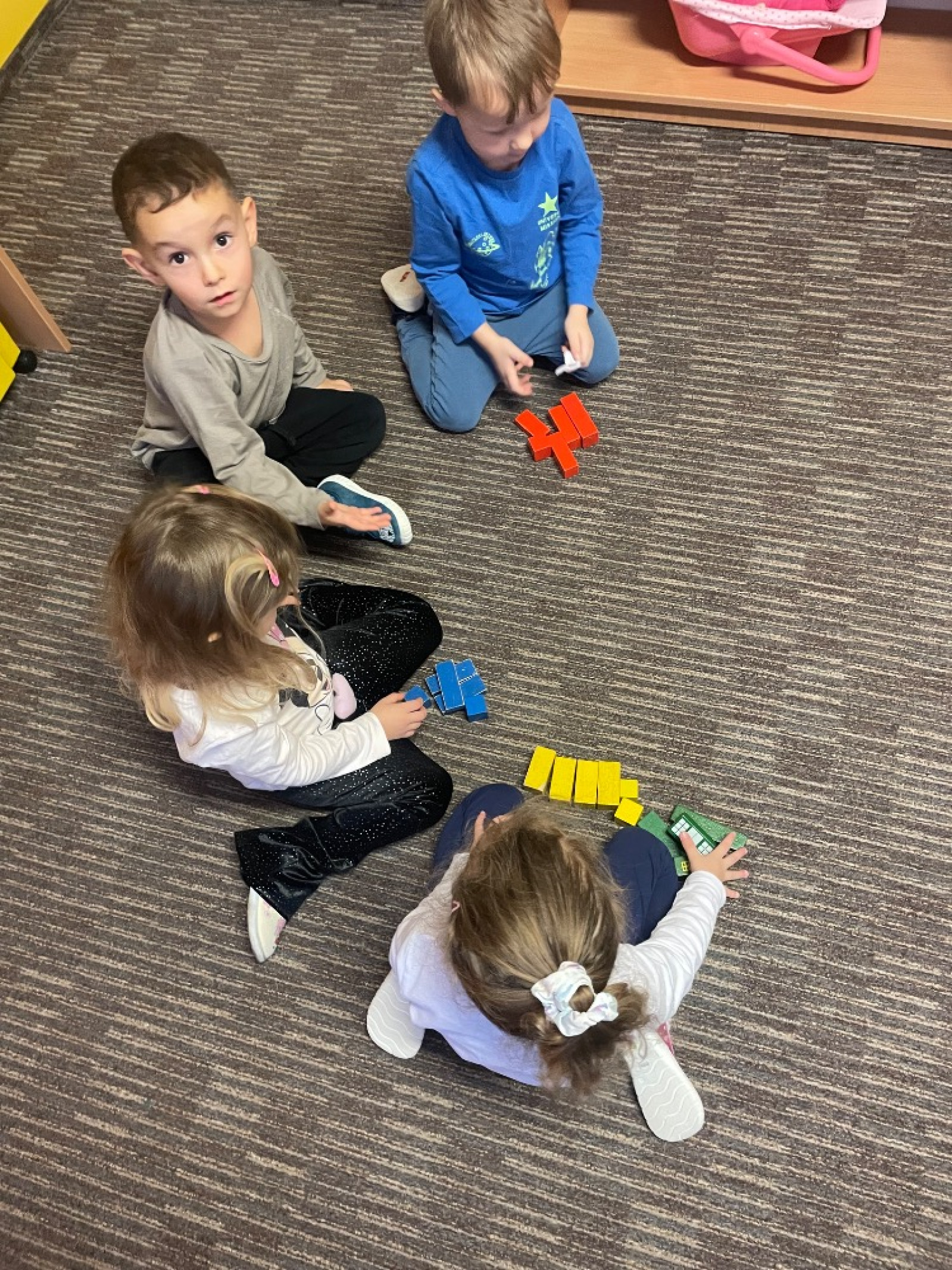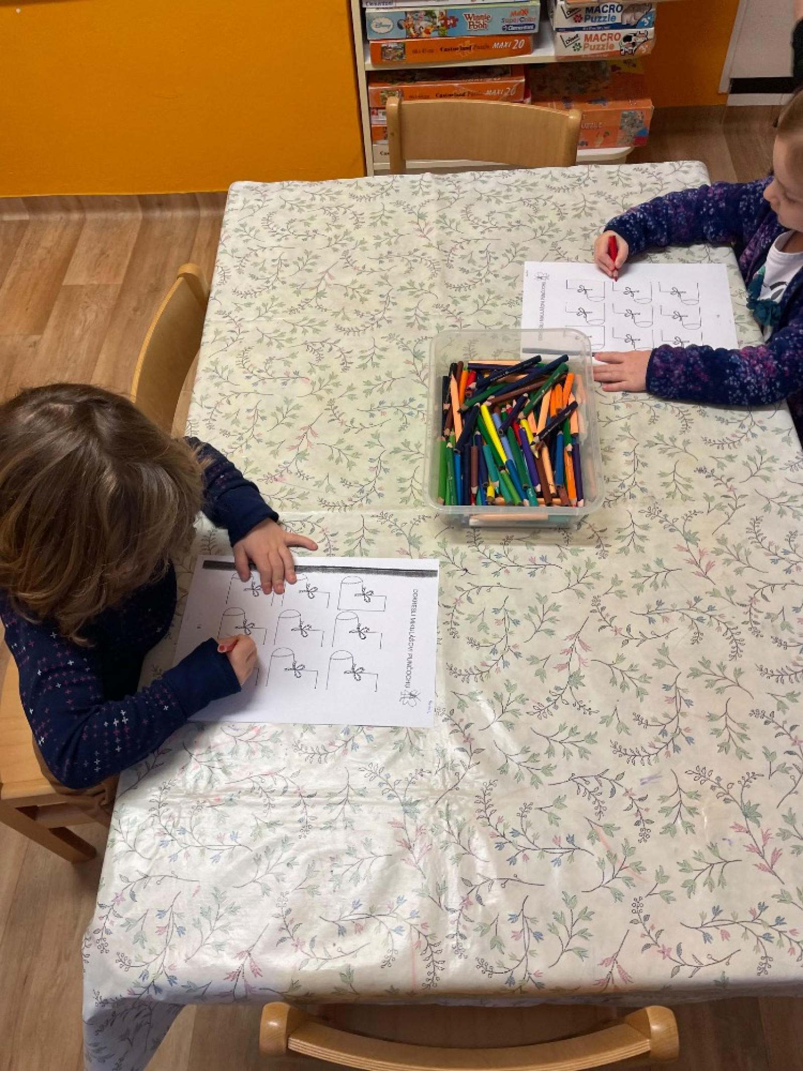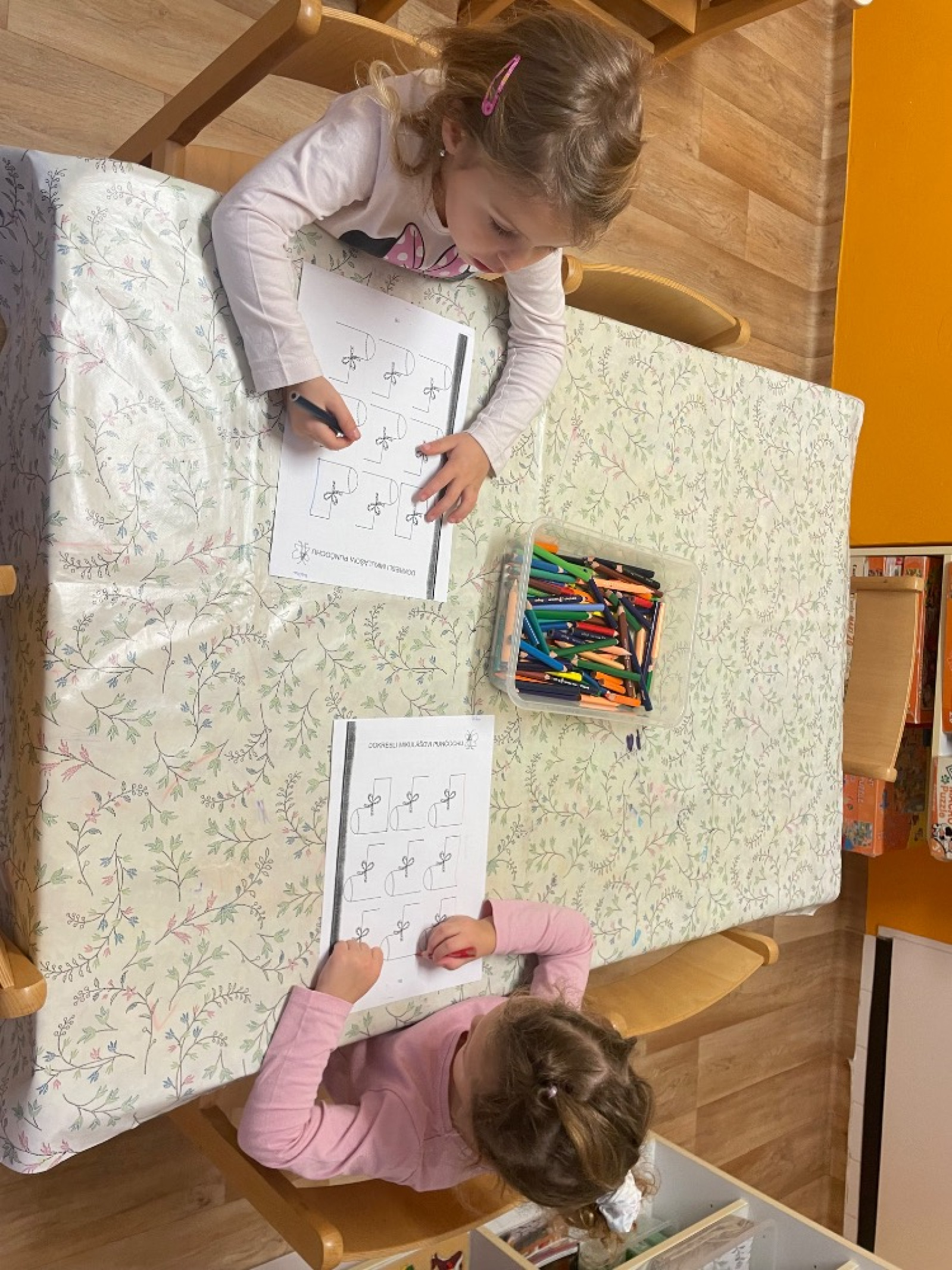 - děti si volně skládaly konstruktivní stavebnice, prohlížely si knihy, NH Na princezny, volně si kreslily u stolečku pastelkami