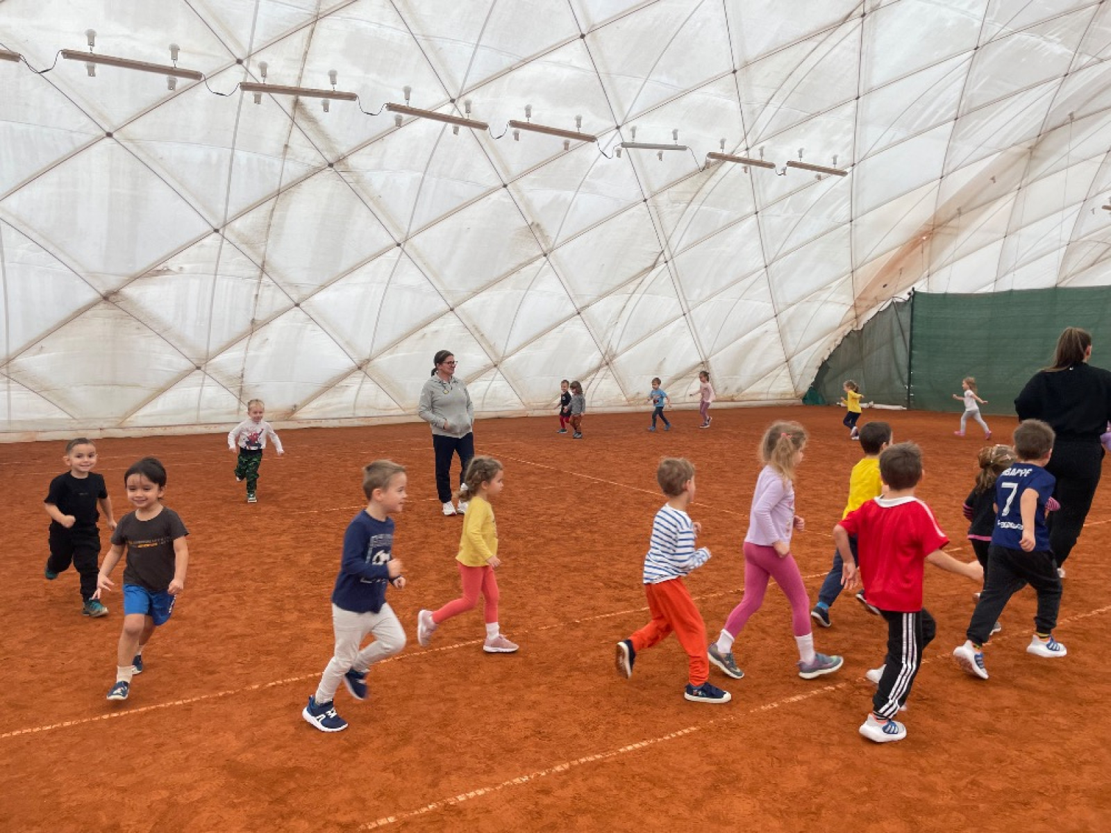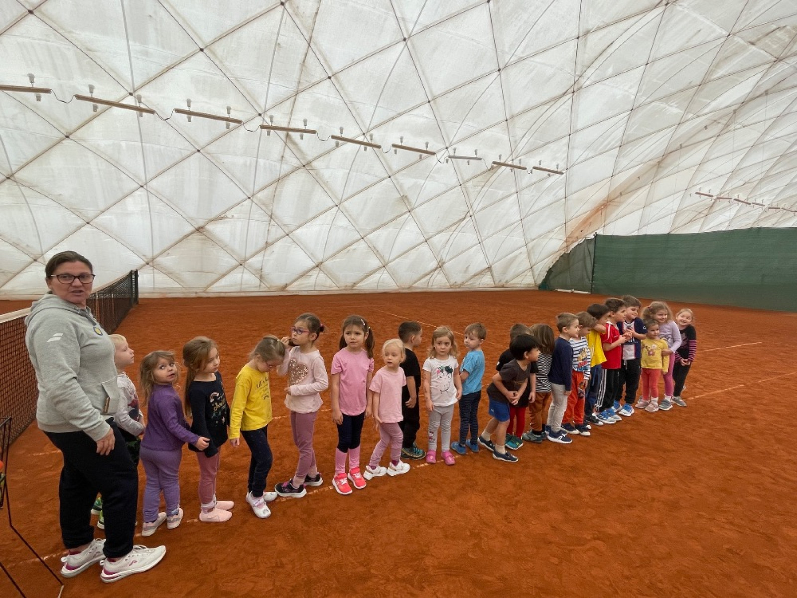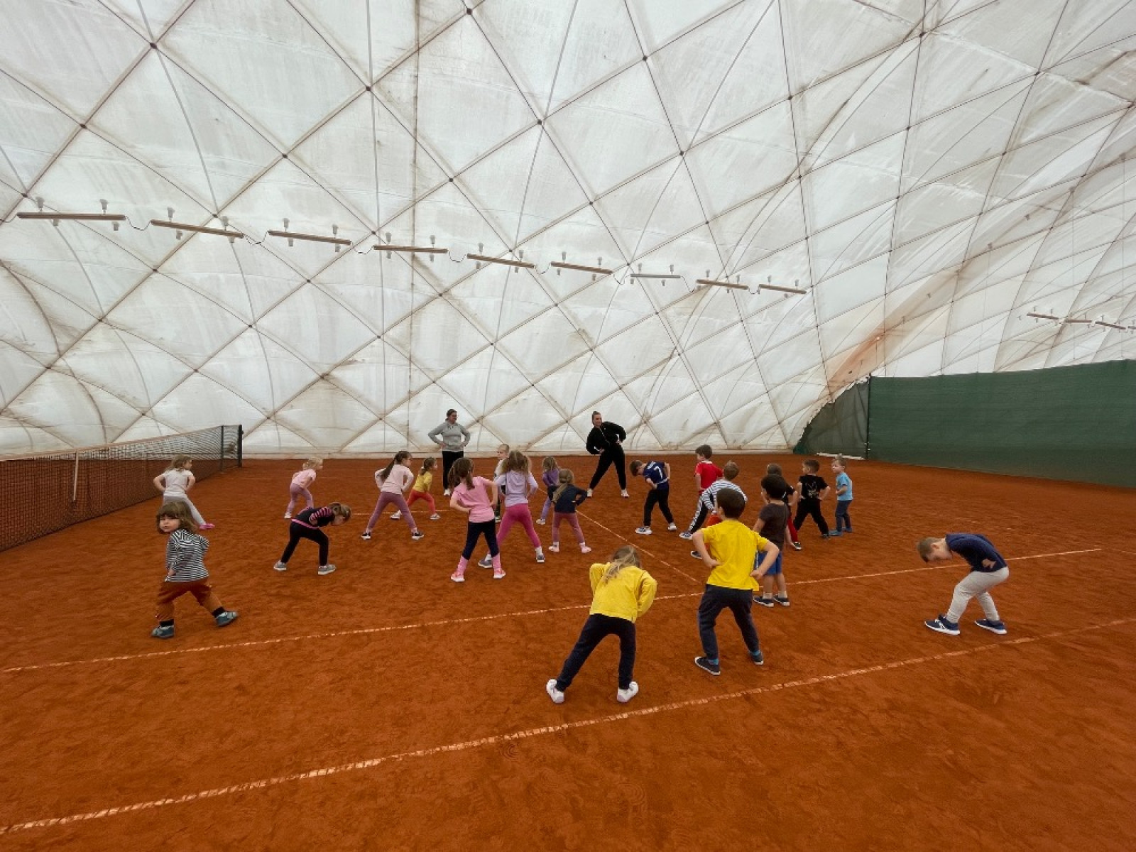 - s dětmi jsme šly na Vršavu (sportování) - děti si zde vyzkoušely atletickou rozcvičku, učily se práci s tenisovým míčkem