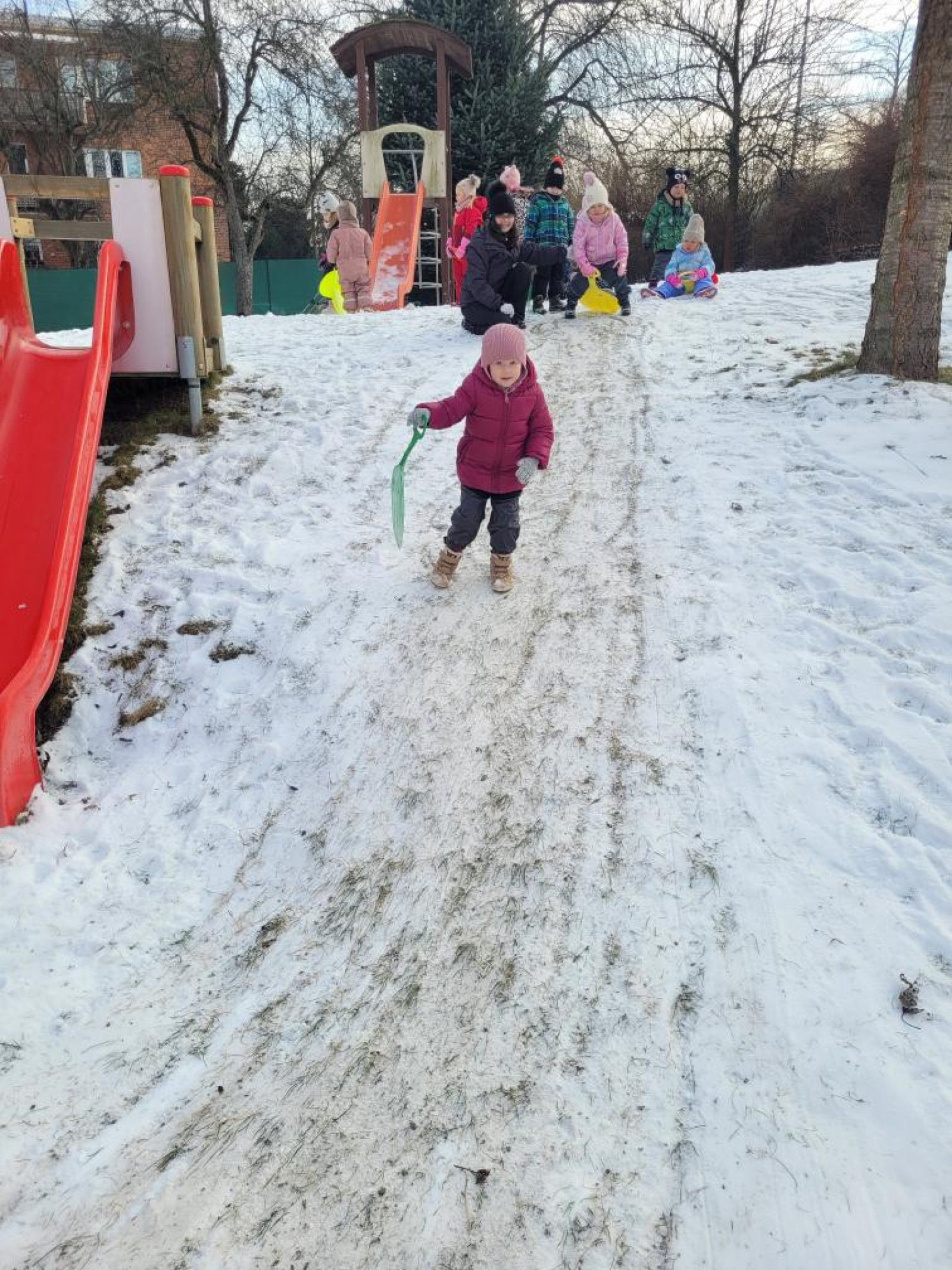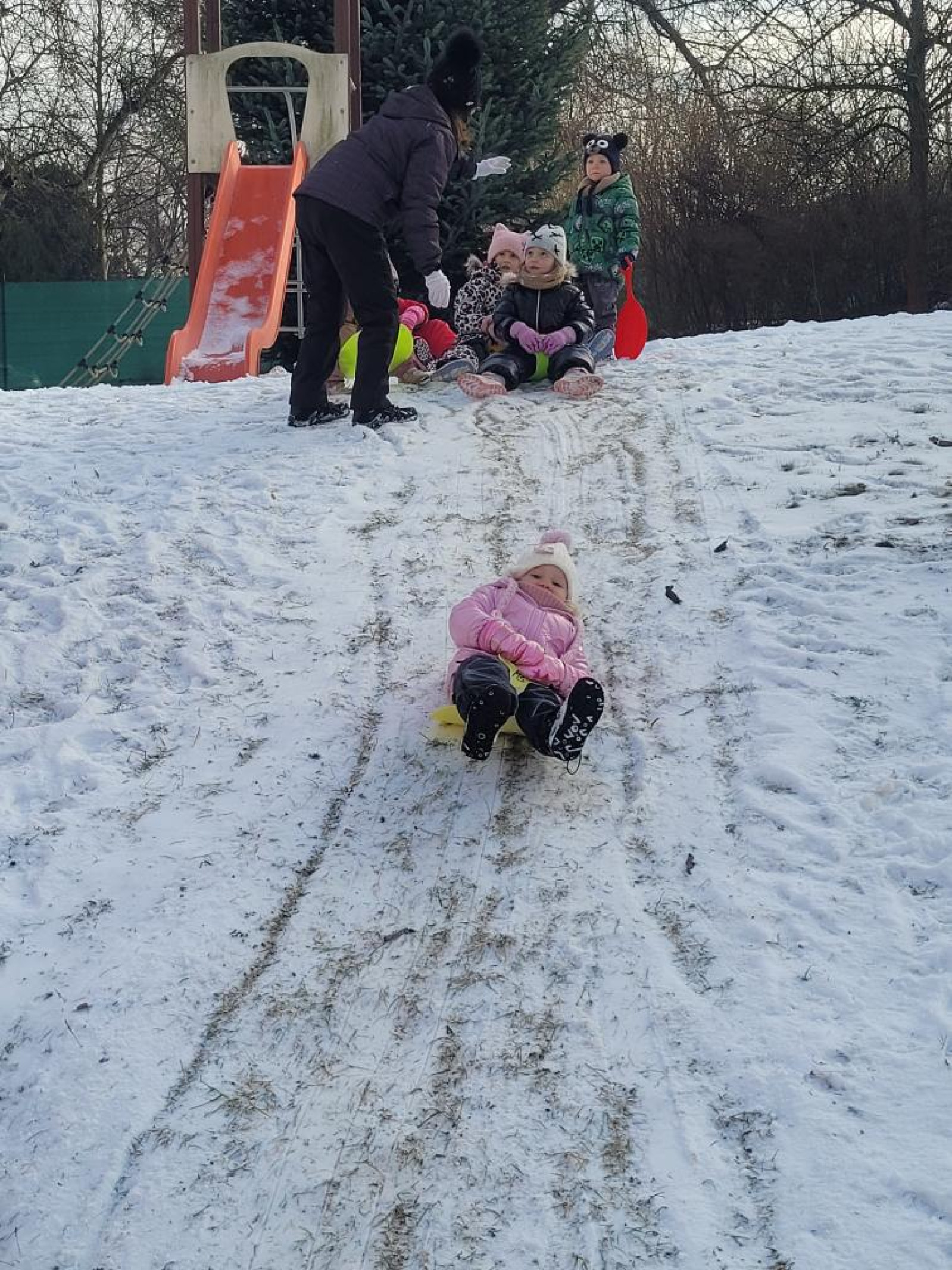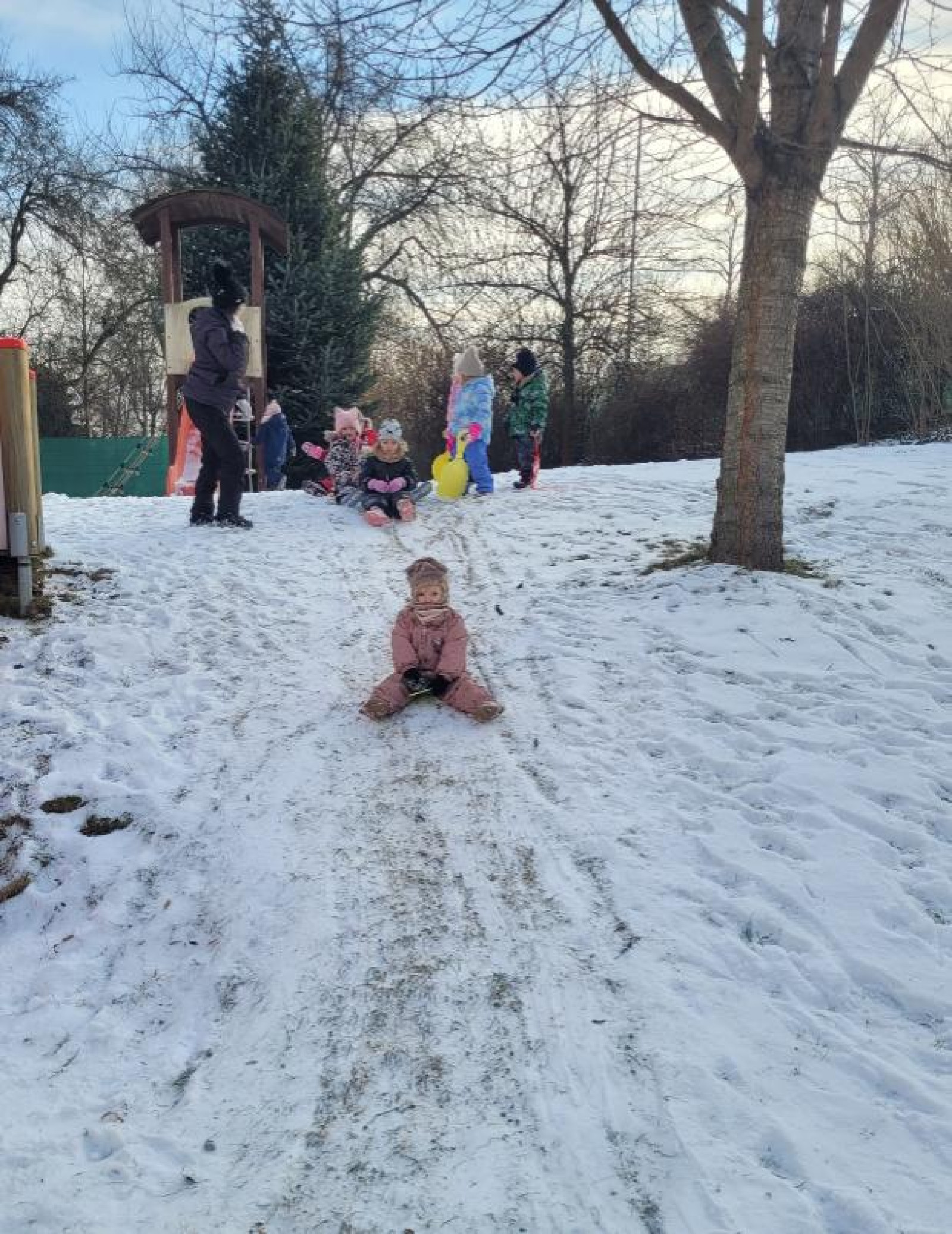 - pobyt na školní zahradě - děti jezdily na lopatách