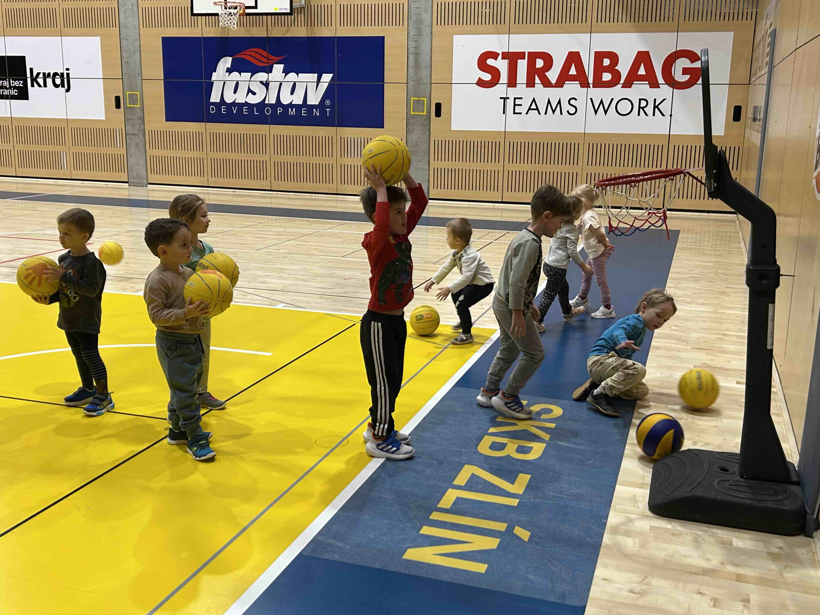 - jeli jsme sportovat na basketbalovou halu na Zelené, děti si zde zahrály pohybové hry, zacvičily rozcvičku, zkoušely si hrát s basketbalovým míčem a házet ho do koše