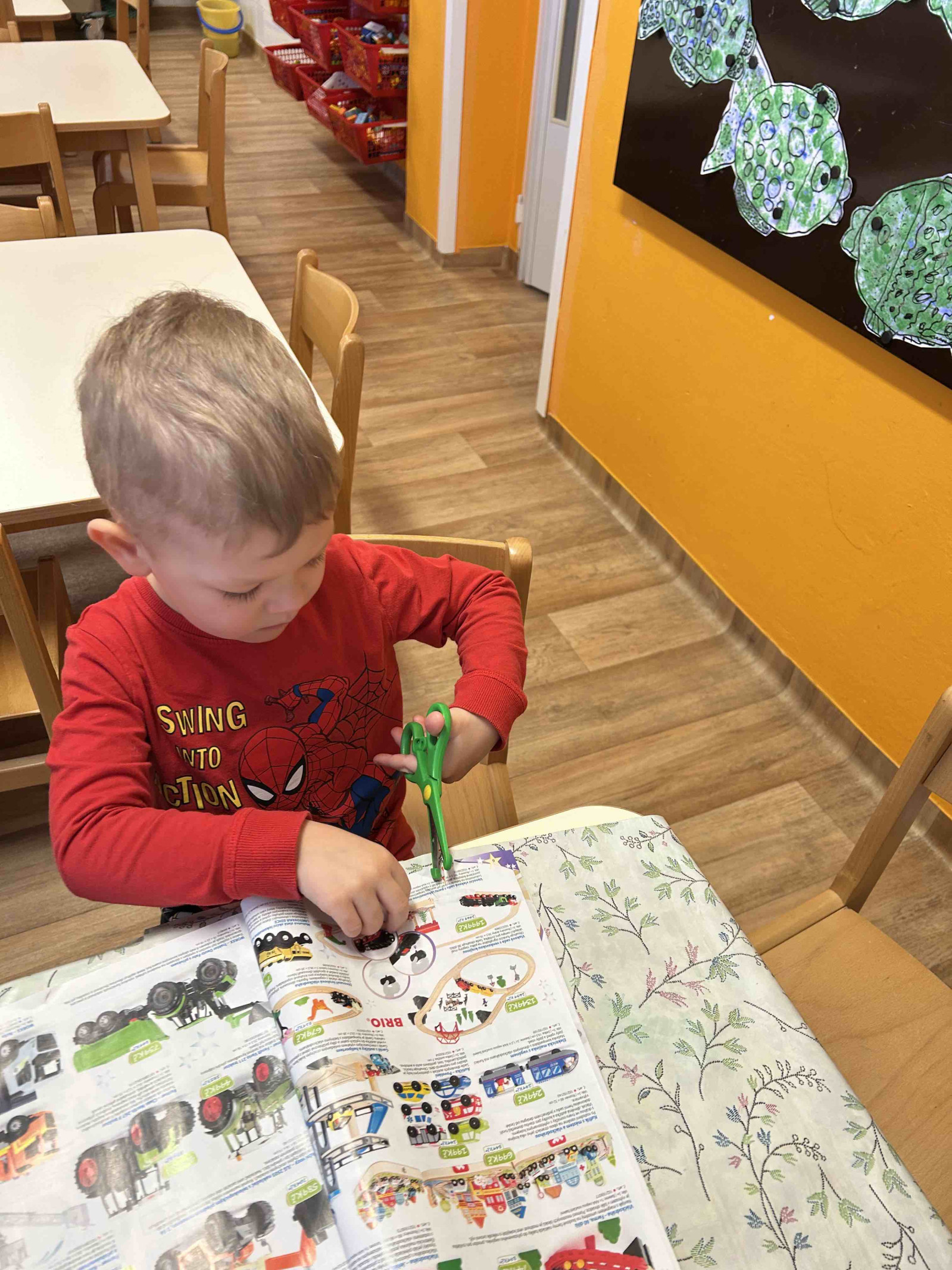 - procvičovali jsme stříhání nůžkami u jednotlivých dětí (obrázky z časopisů)