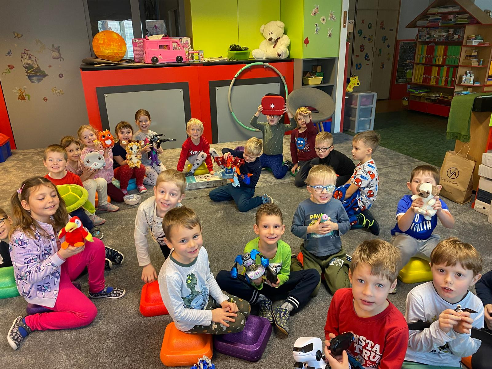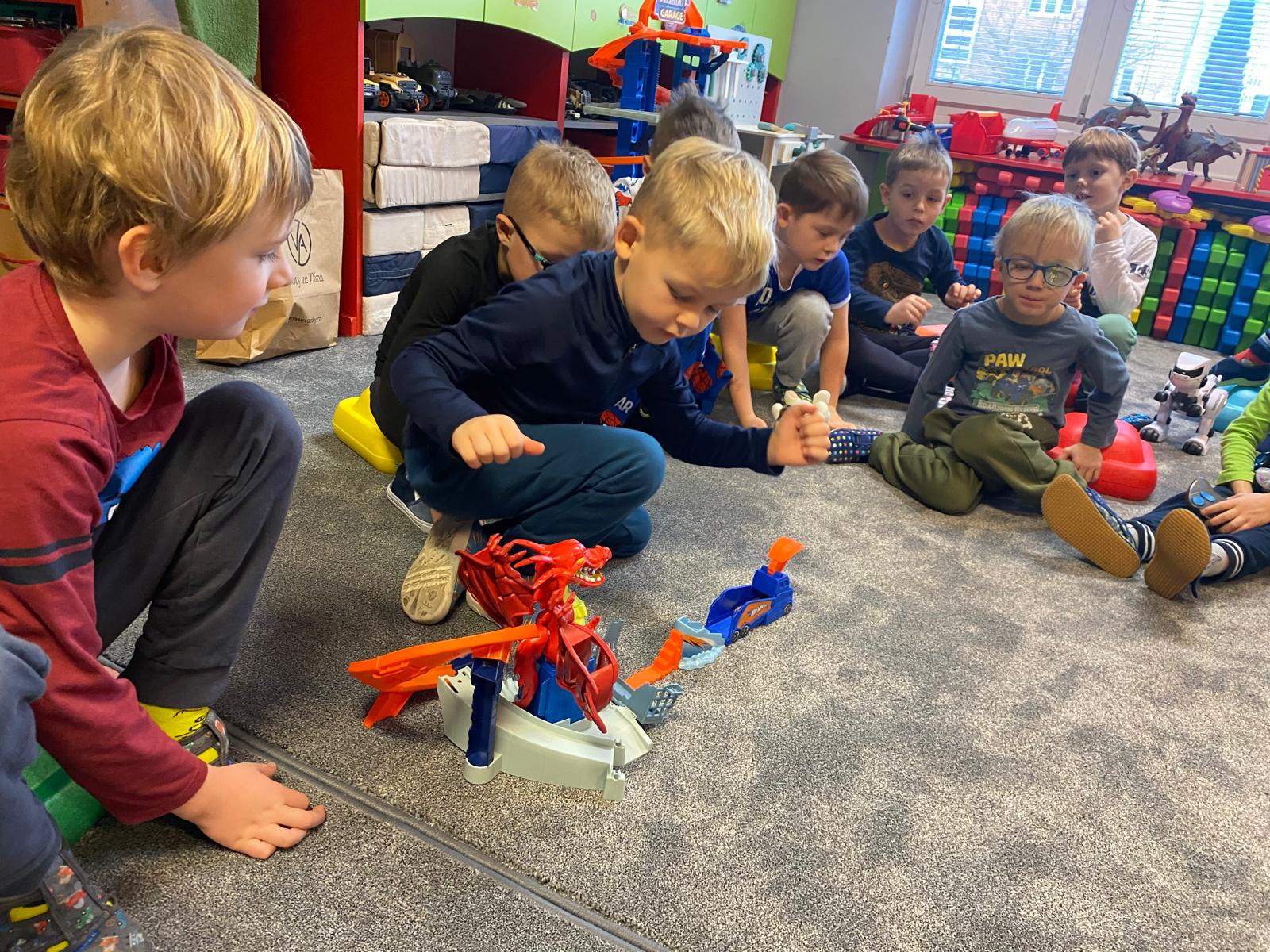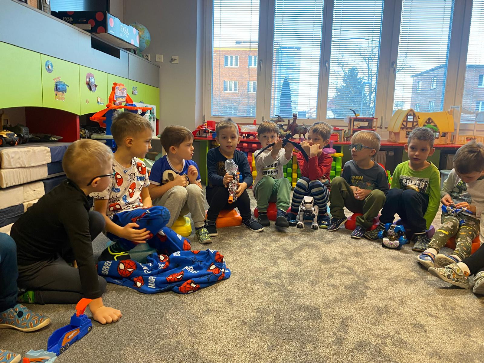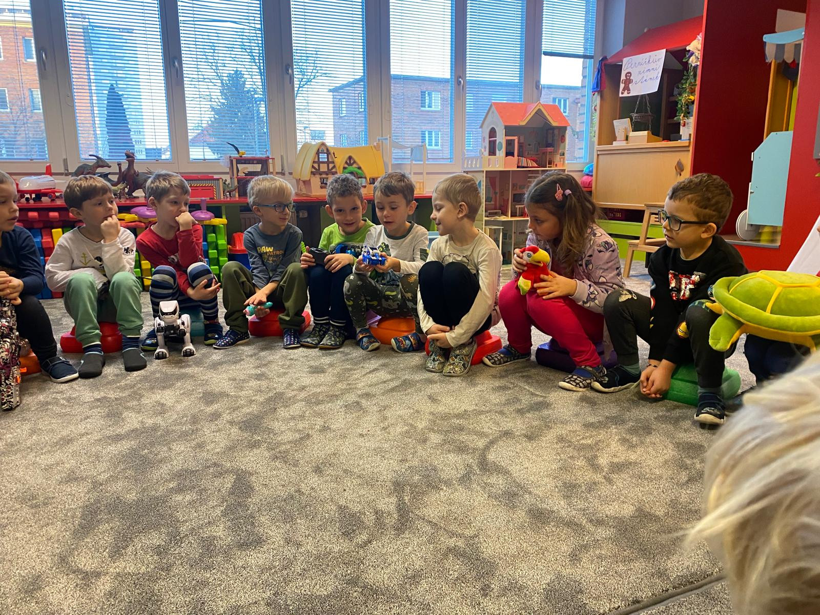 - Přinesli jsme si do školky jeden ze svých dárků co jsme dostali doma pod stromeček a postavili jsme si školku pro hračky. Každý svou hračku předvedl kamarádům.