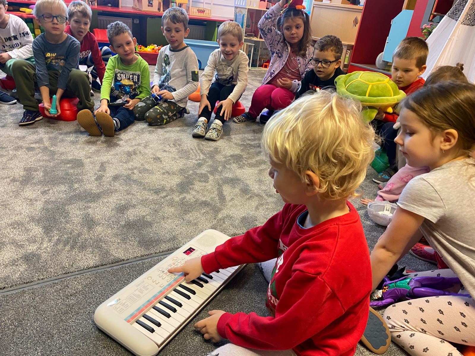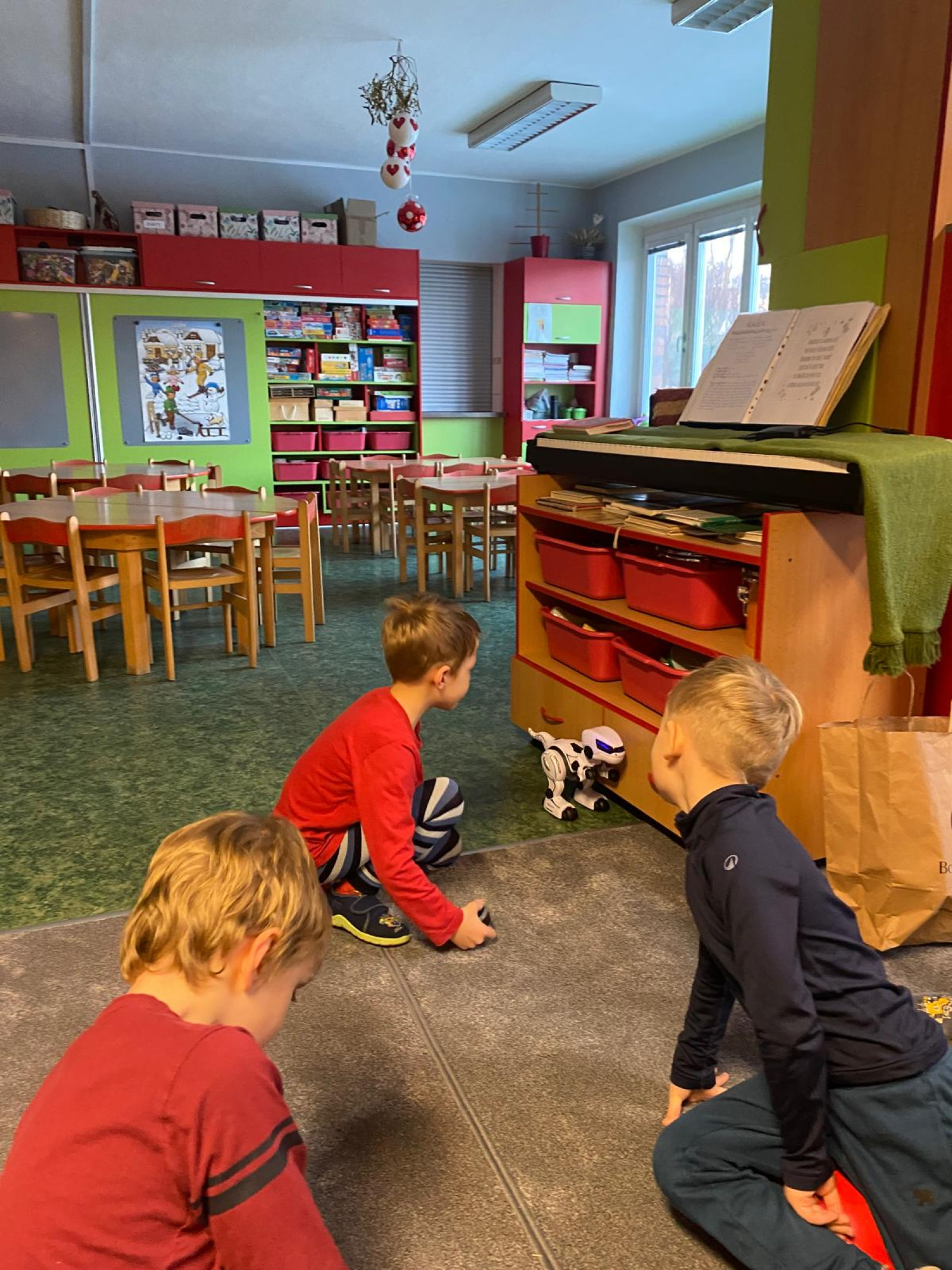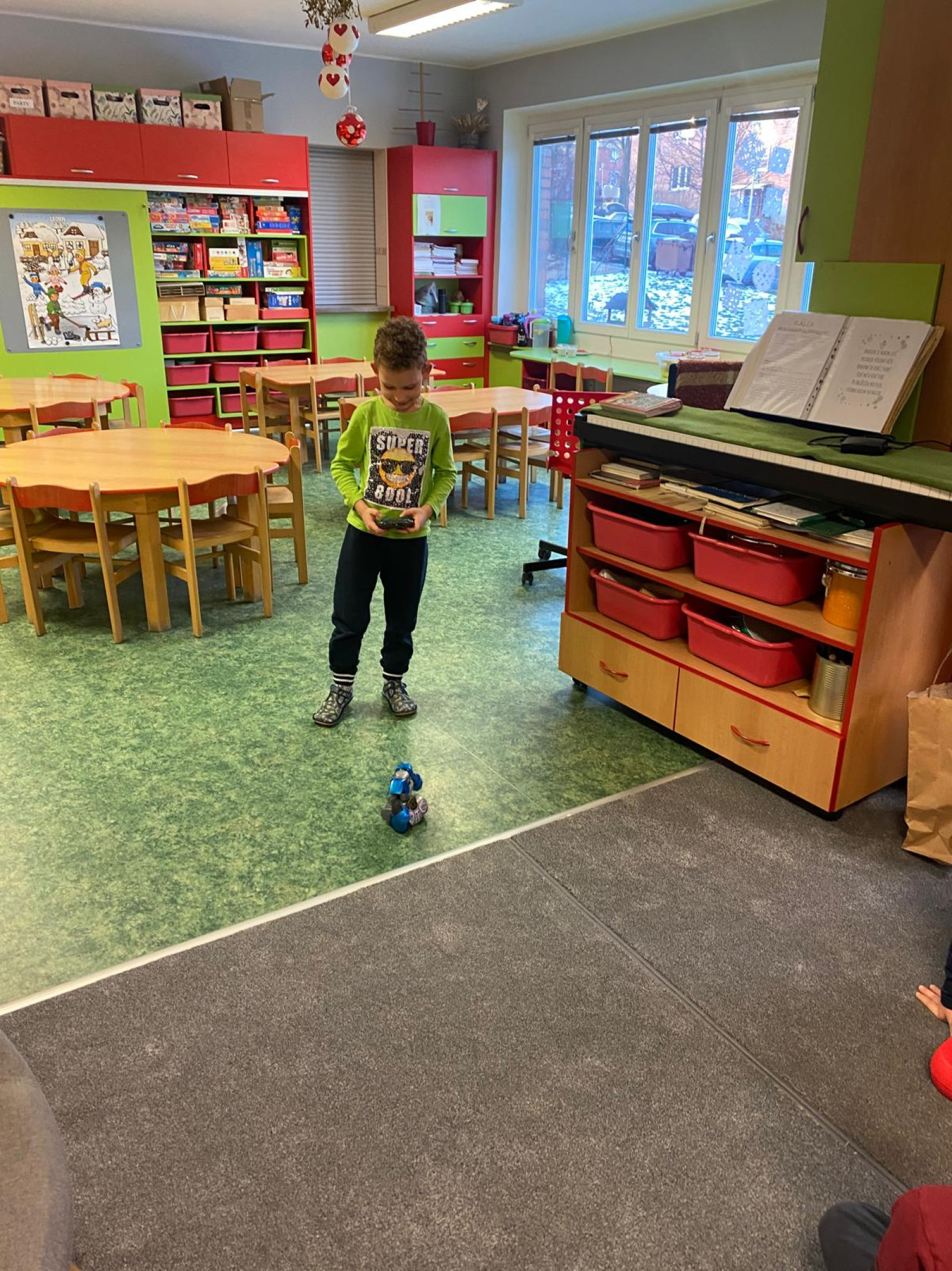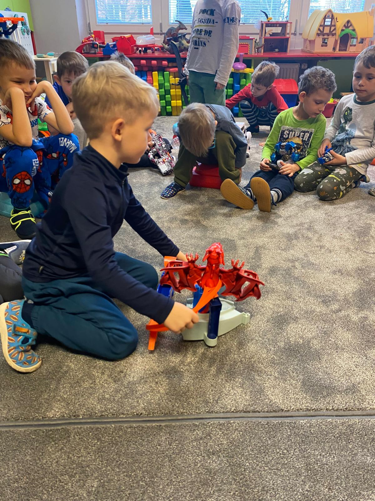 - Přinesli jsme si do školky jeden ze svých dárků co jsme dostali doma pod stromeček a postavili jsme si školku pro hračky. Každý svou hračku předvedl kamarádům.