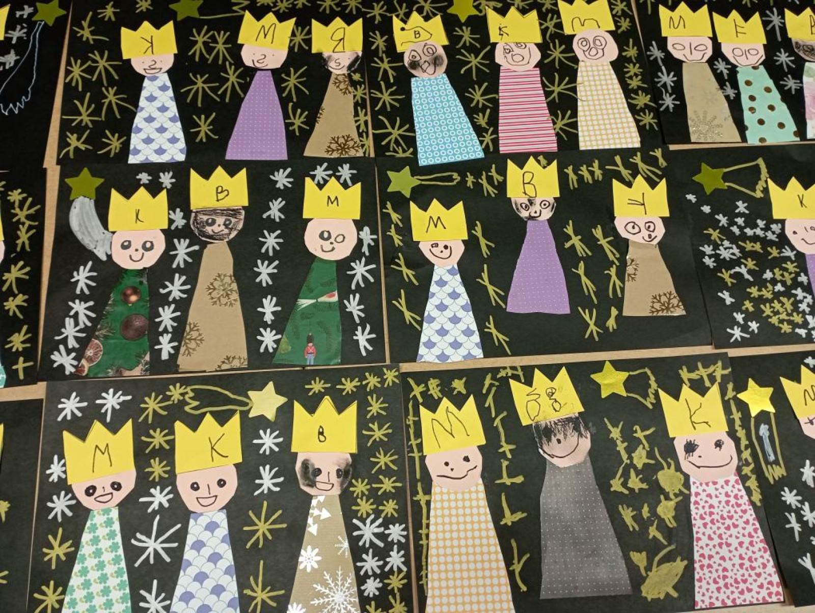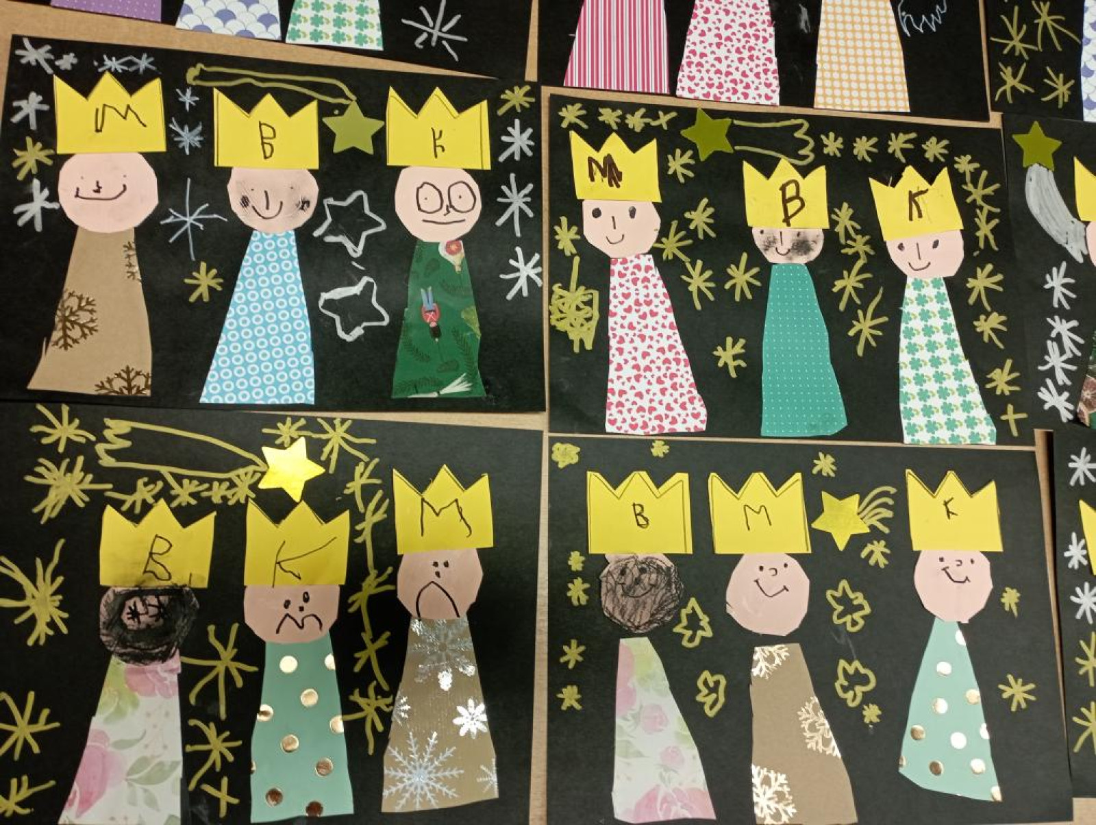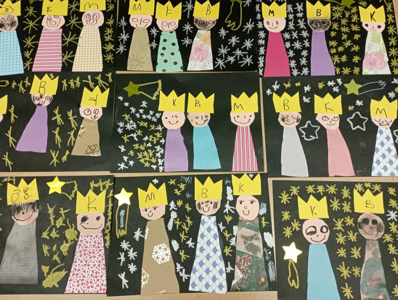 - děti dokončily dle vlastní fantazie výt.práci Tři králové nalepením a dokreslováním hvězdiček a písmen