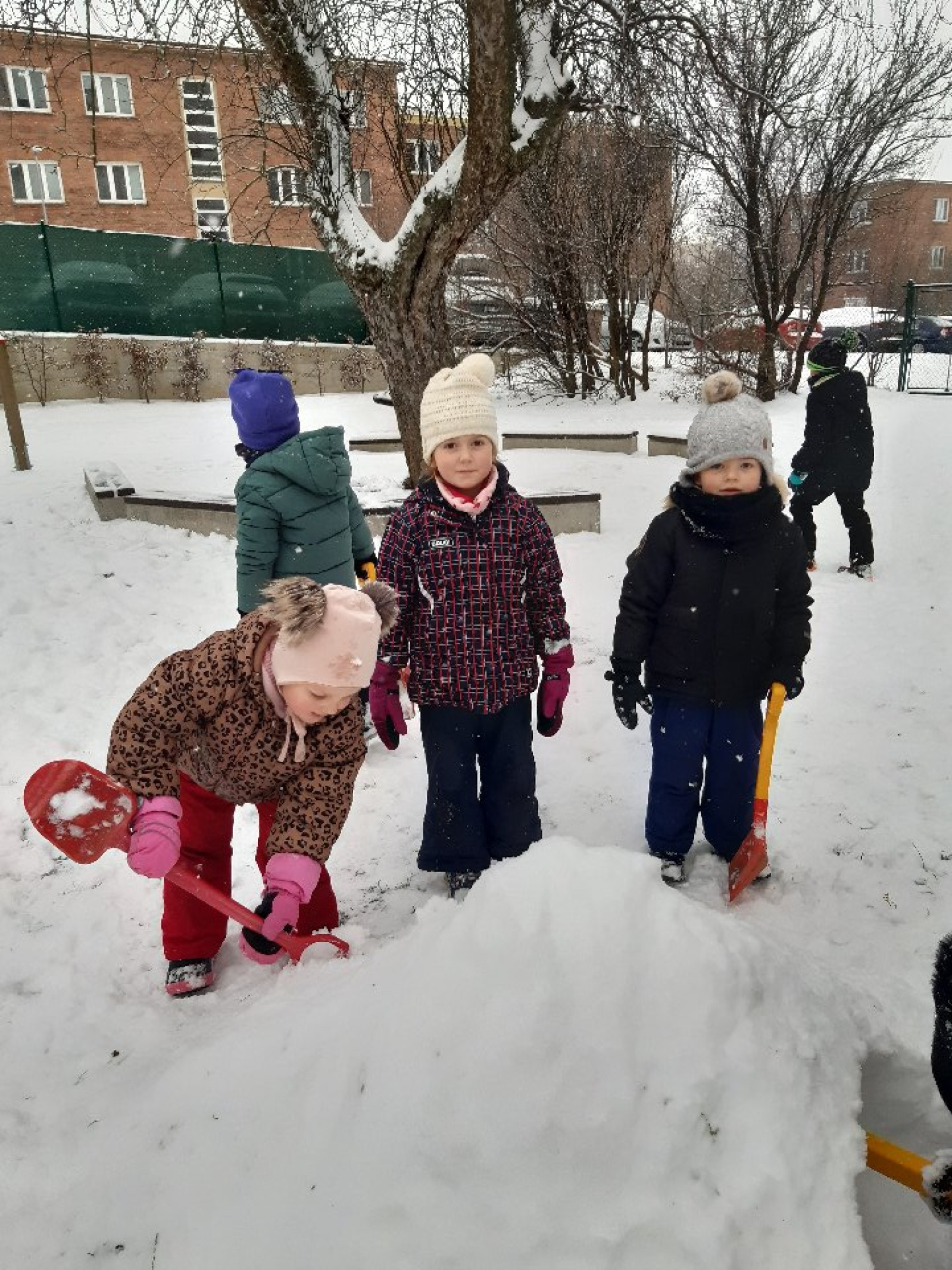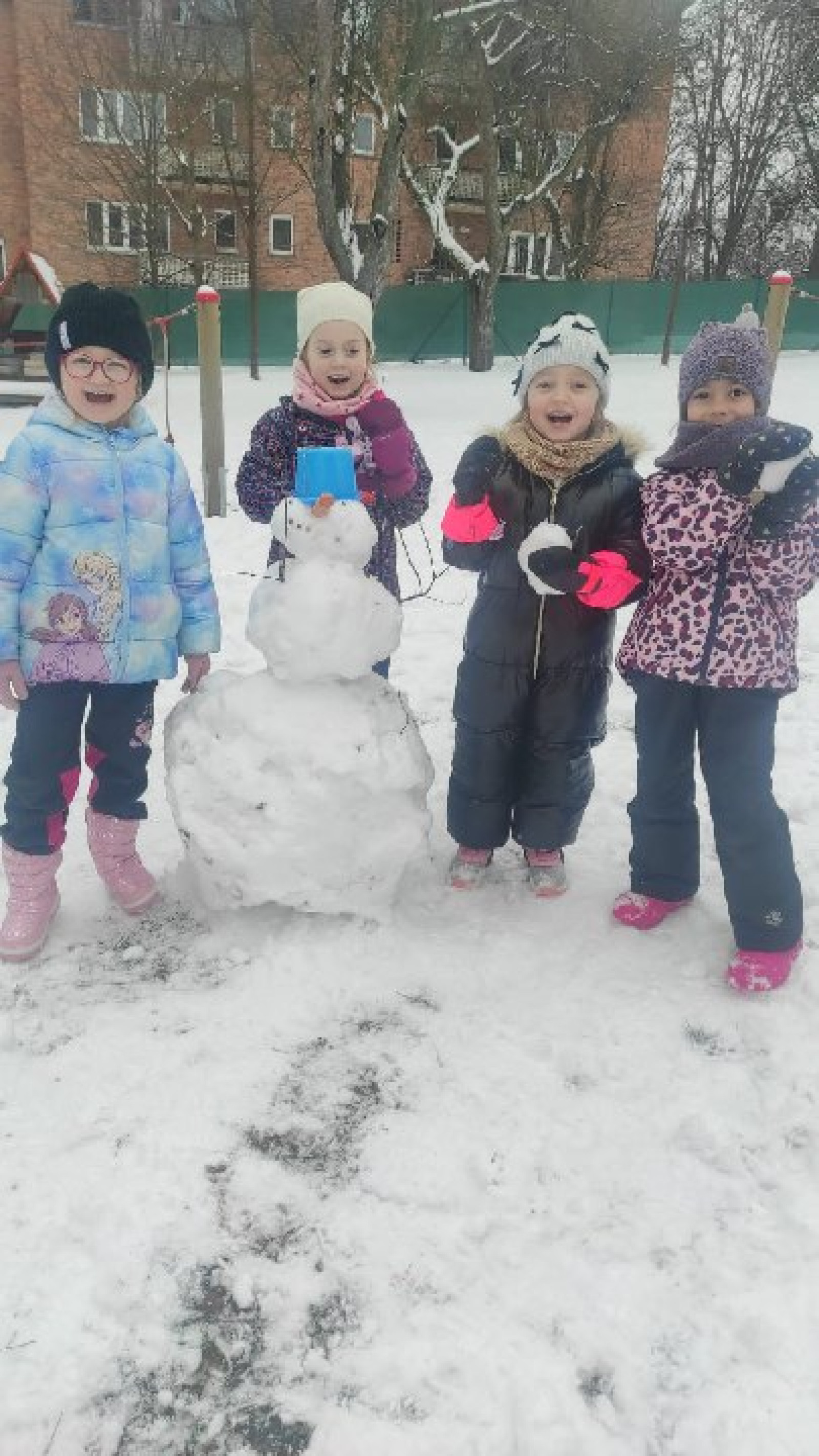 - na školní zahradě jsme si užívali zimních radovánek - jezdili jsme na lopatách, stavěli iglú, sněhuláky, koulovali se