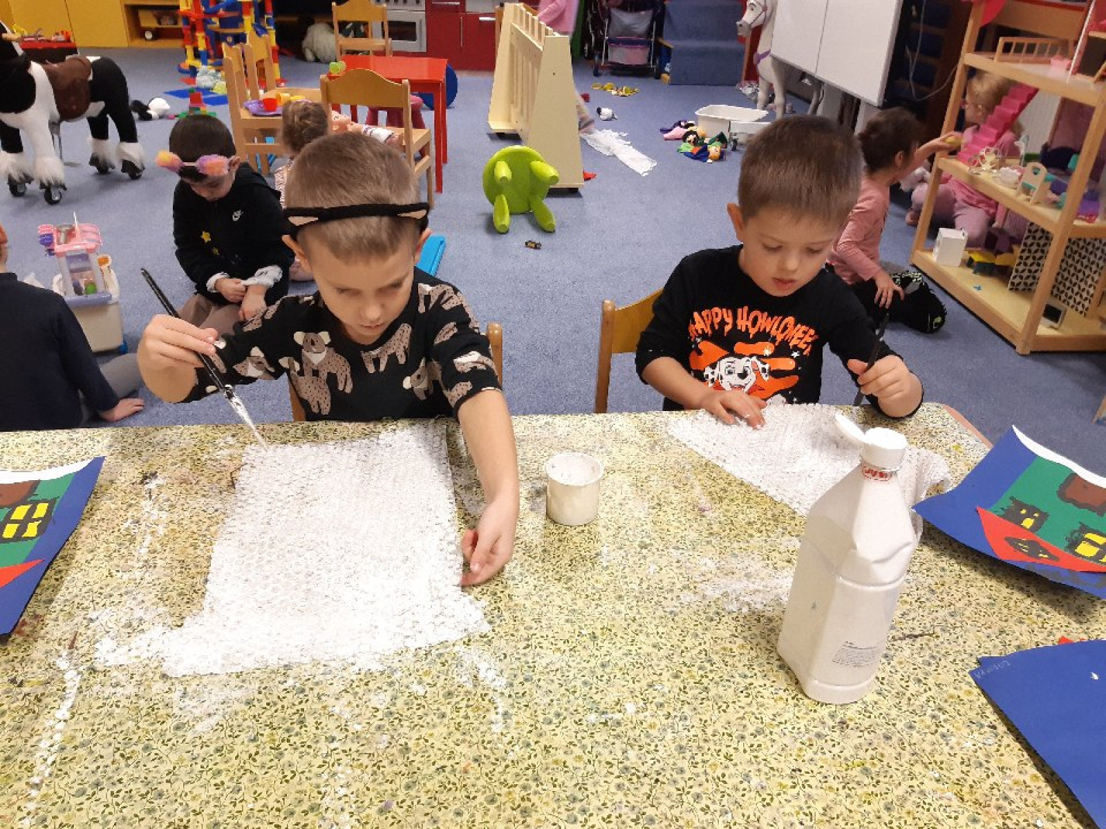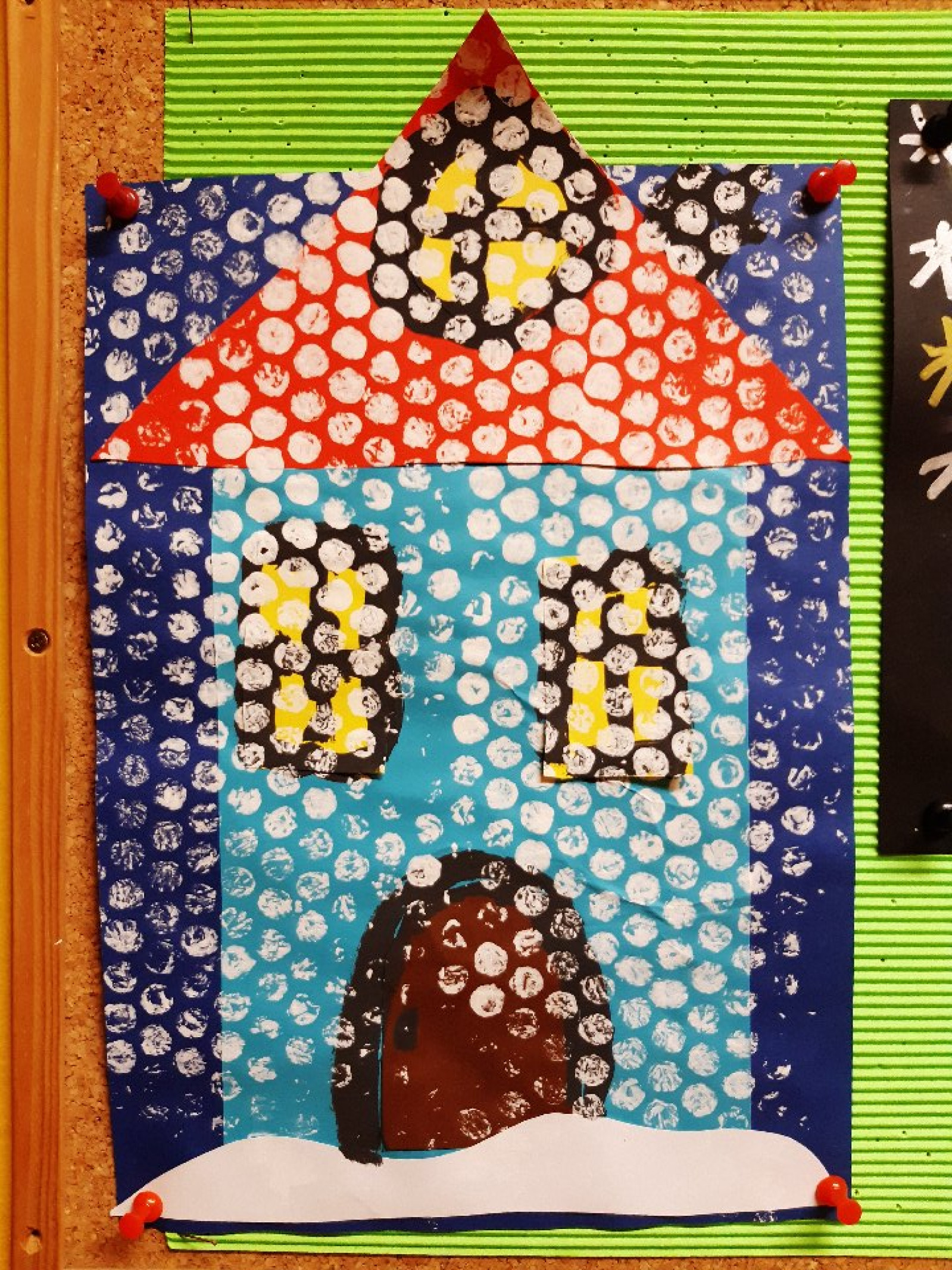 - pracovní činnost - "zasněžený domeček" (děti procvičily držení tužky, stříhání)