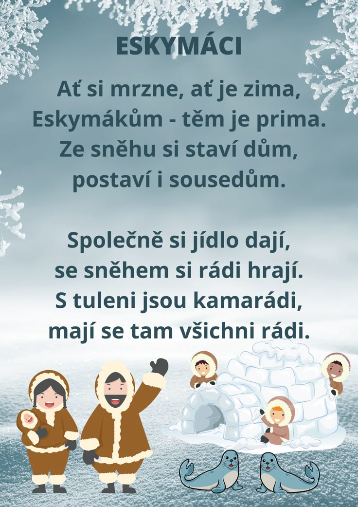 - procvičili jsme názvy ročního období, dnů v týdnu a učili se zimní básničku