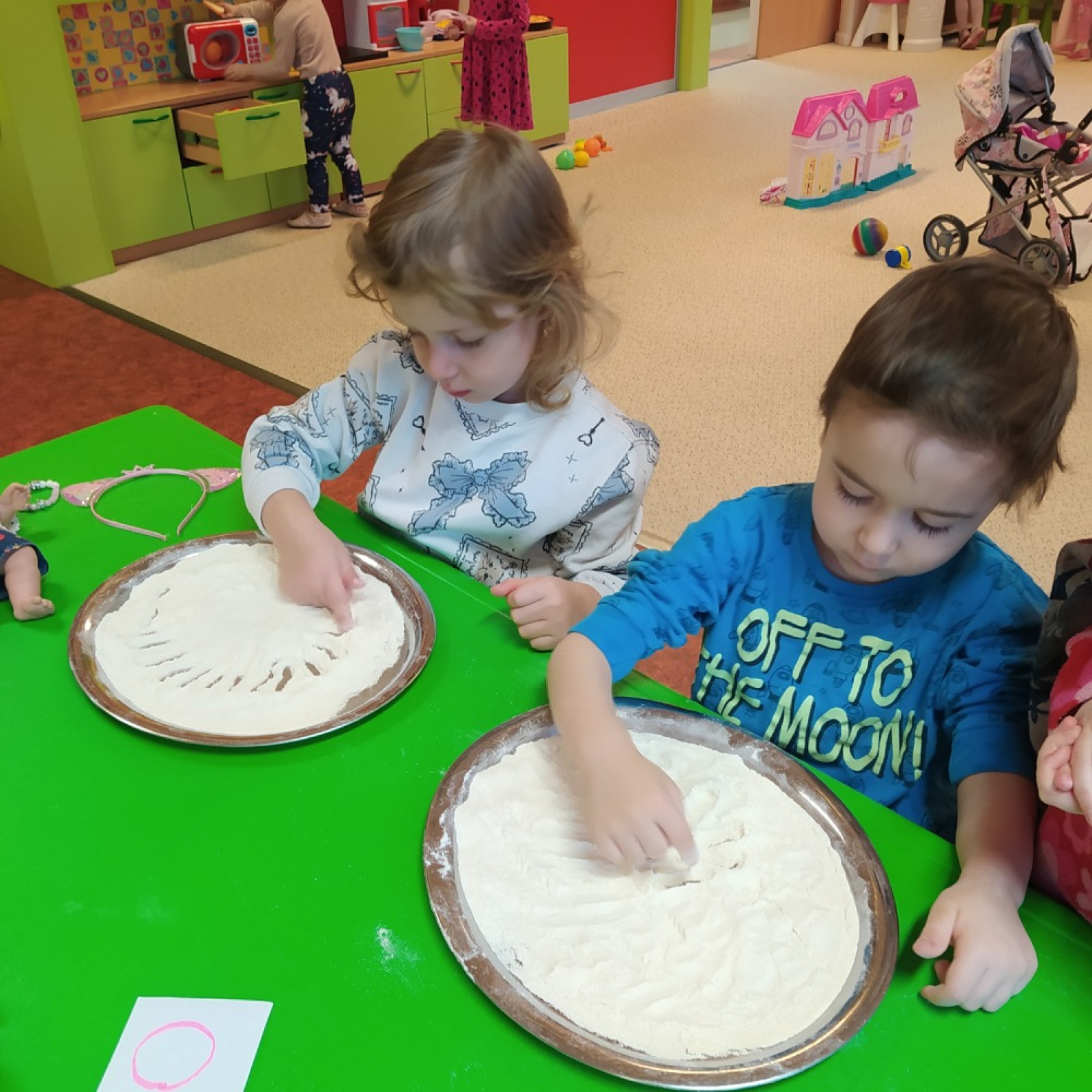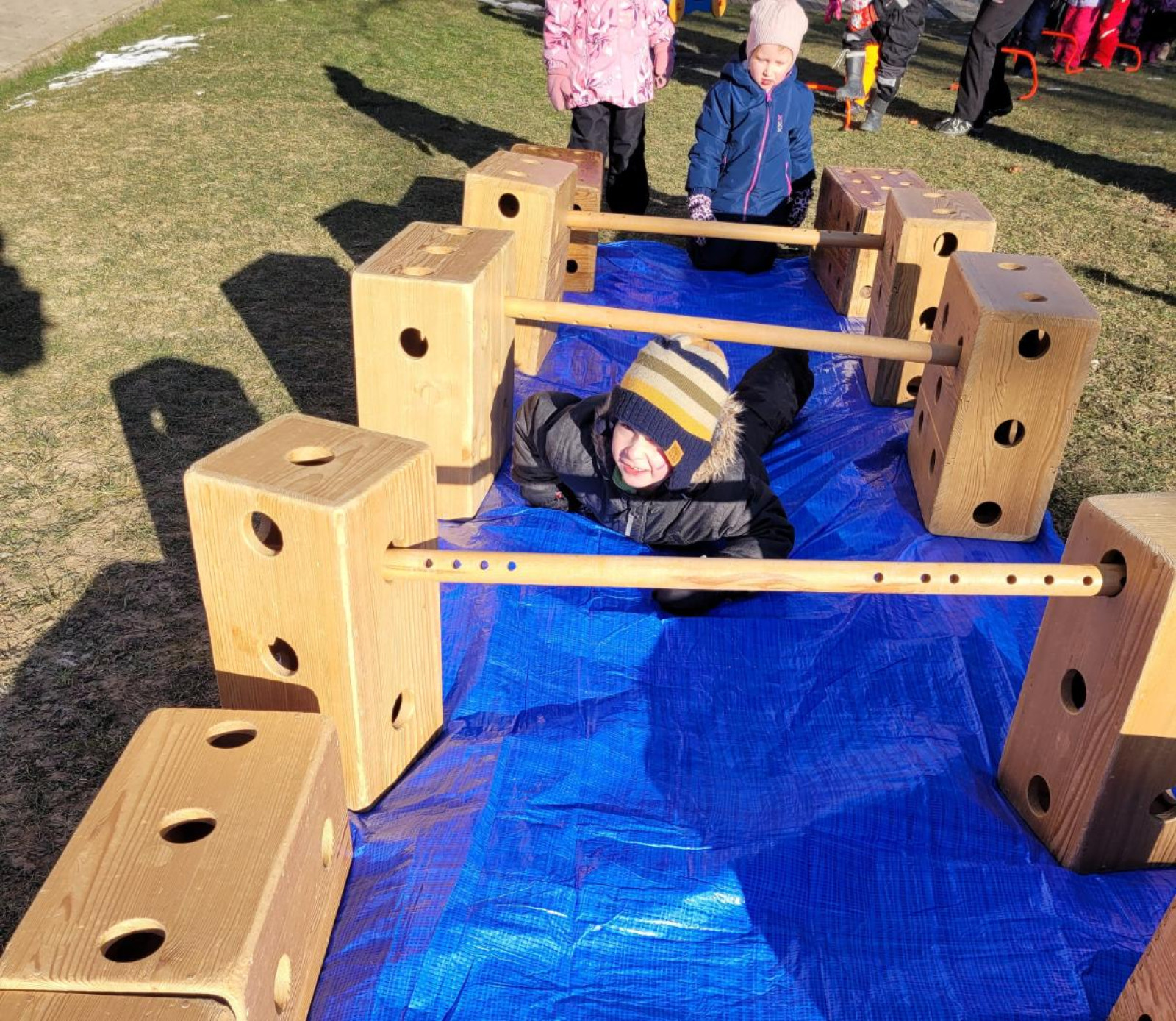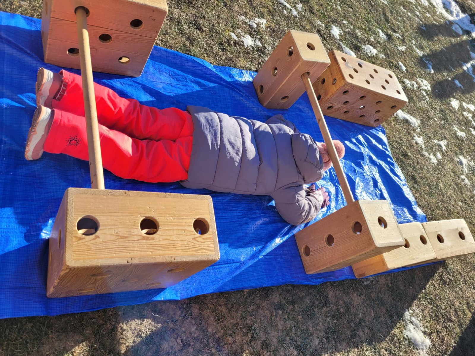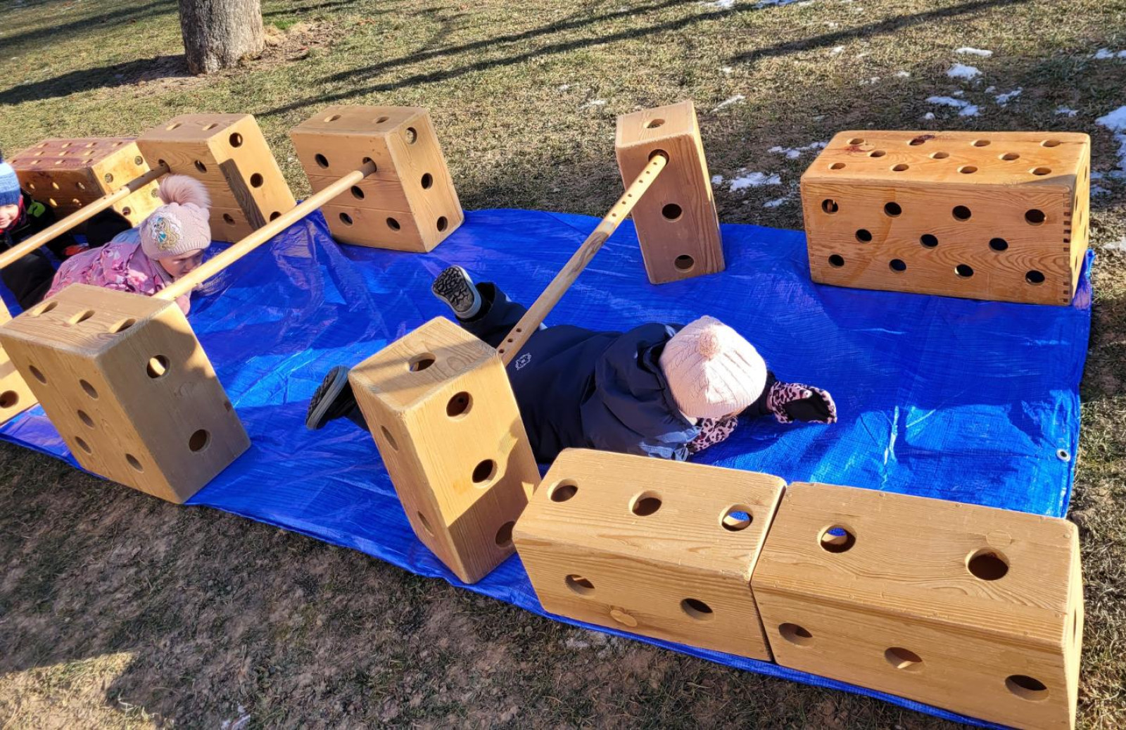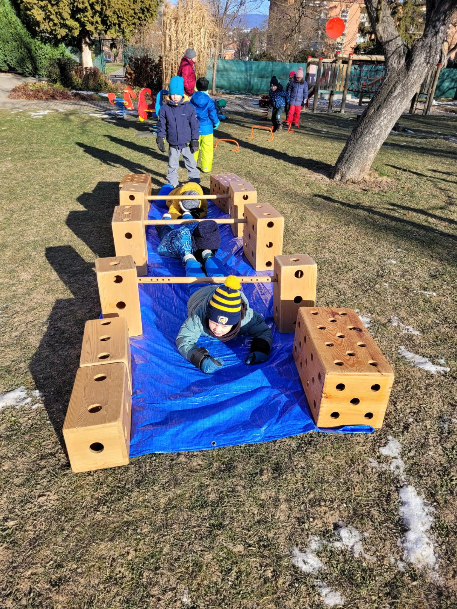 - postavili jsme z velkých kostek nový domeček, děti si hrály na rodinu, puzzle a dřevěné vkládanky, vláčkodráha, prohlíželi jsme si knihu o zvířatech (jak spí netopýři)