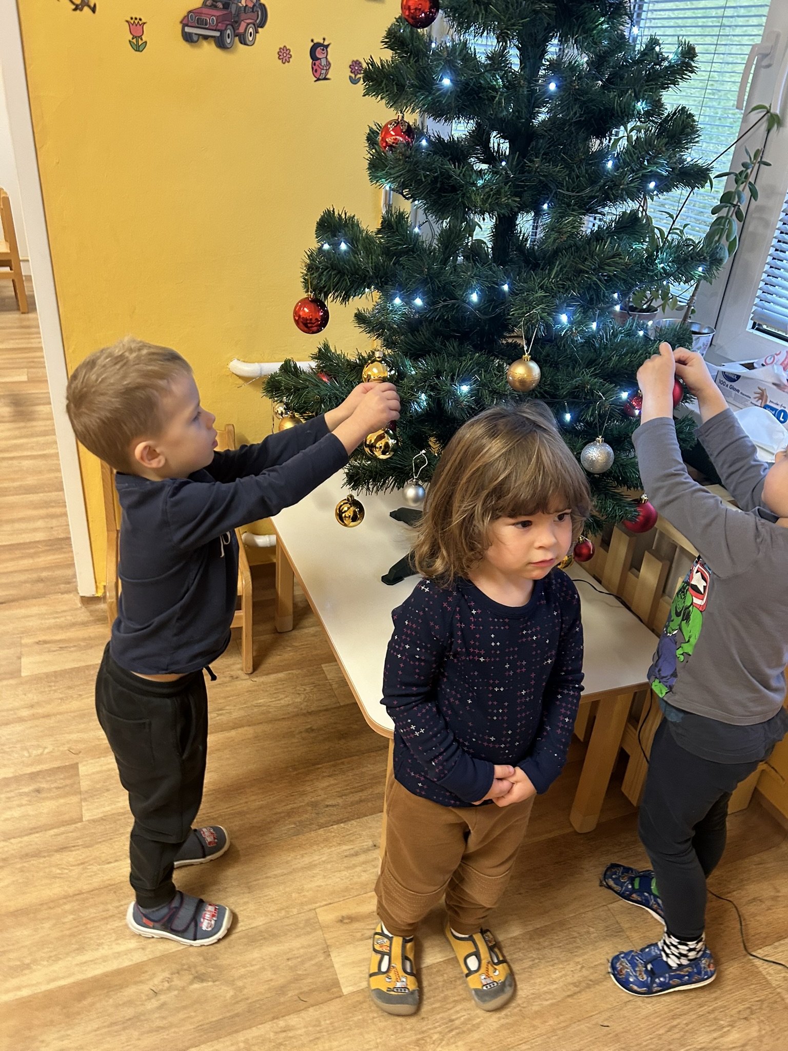 1.+2. třída Zdobení stromu před MŠ